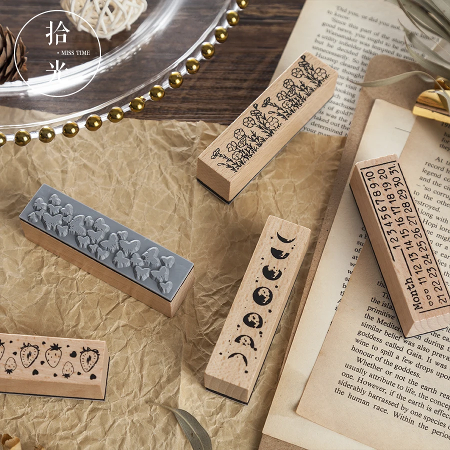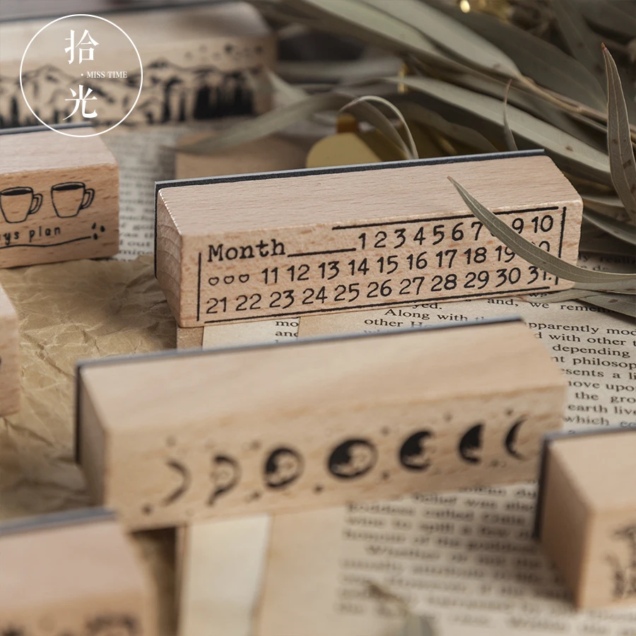 Винтажные штампы, деревянные и резиновые штампы с цветами, планетой, луной, дневник писем, ремесло, Скрапбукинг
