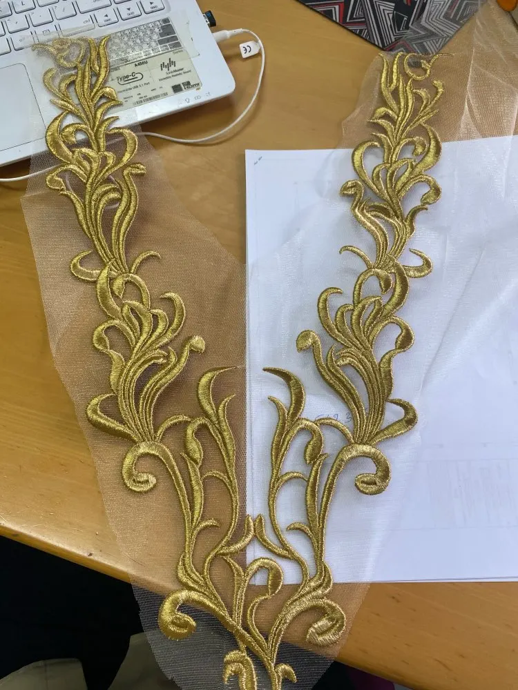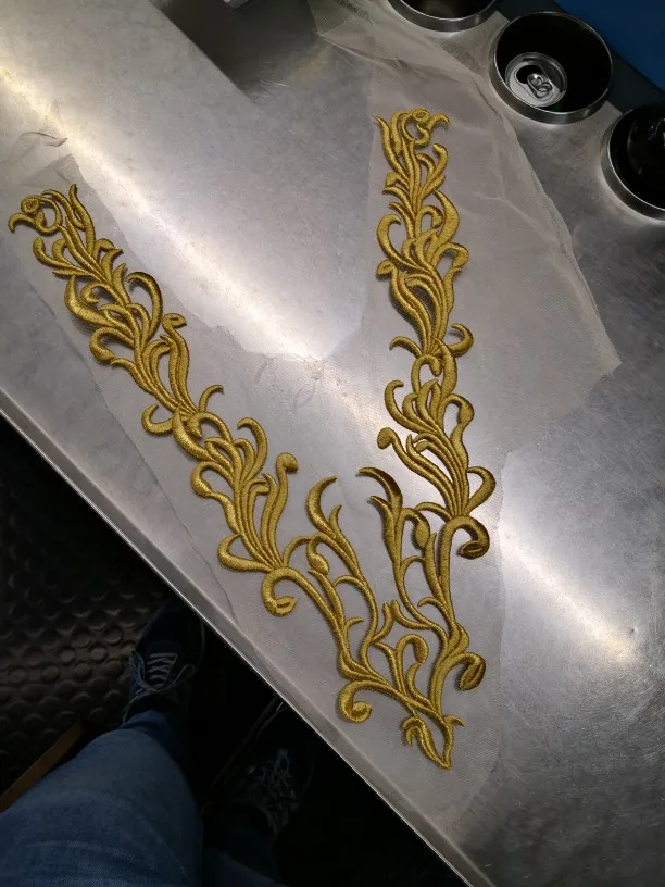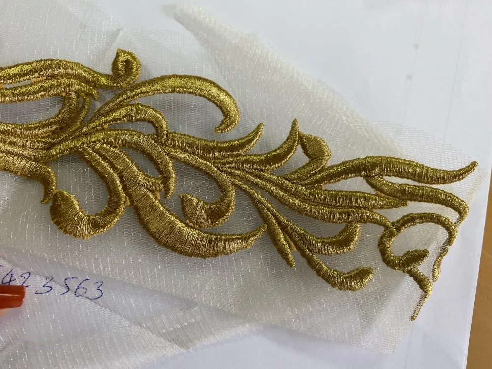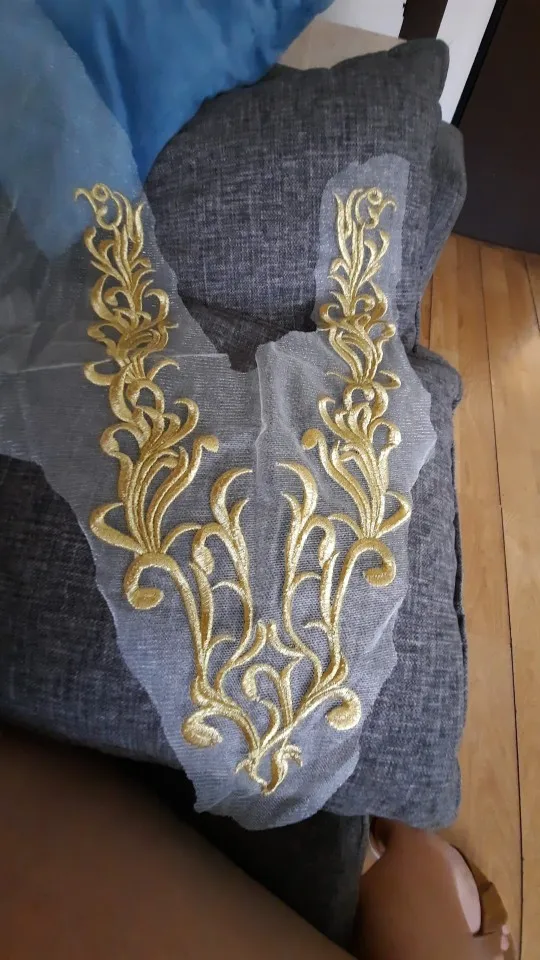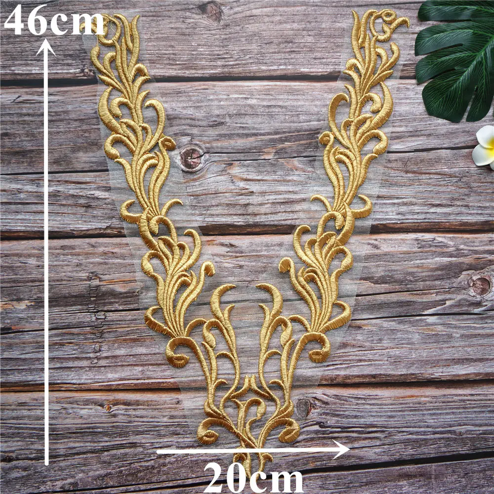 Золотая кружевная ткань, вышитые аппликации для платья, воротник с цветами, сетка в стиле барокко, винтажные нашивки для свадебного украшения платья, сделай сам