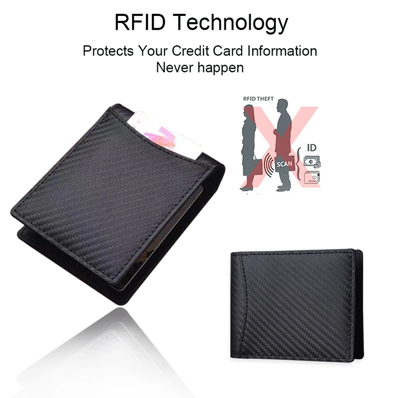 DIENQI мужской кошелек из натуральной кожи и углеволокна, двойной д...