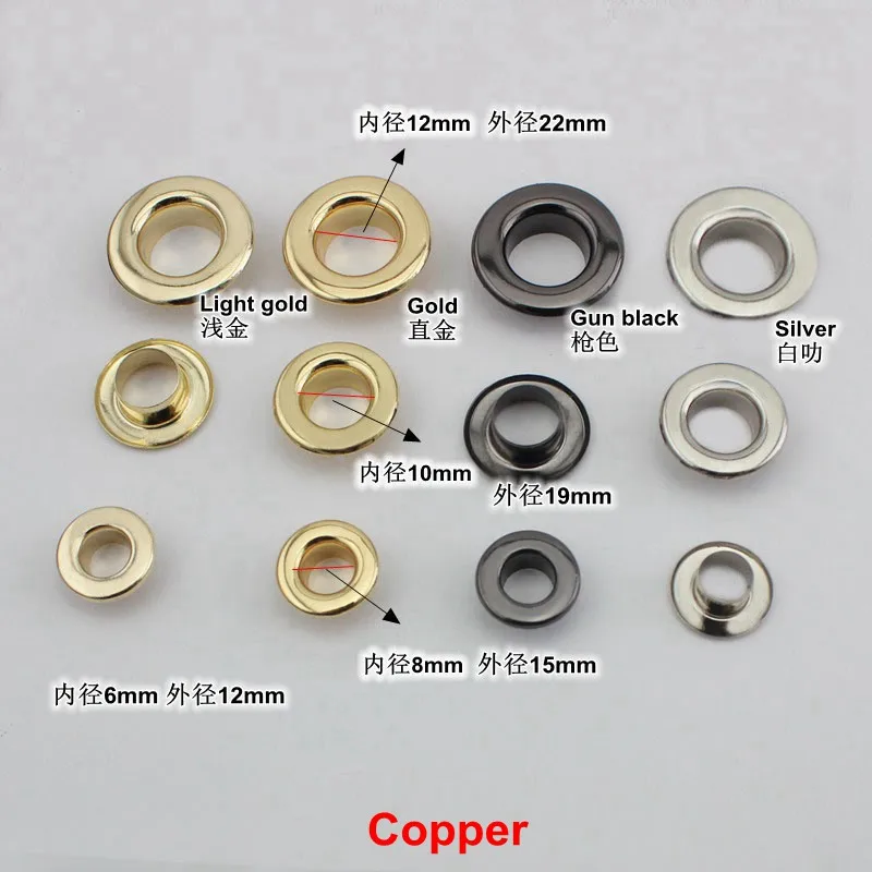 50 шт. медные 8 мм 10 мм 12 мм толкаемые мешки с люверсами, металлические фитинги, аксессуары, прессованные круглые люверсы