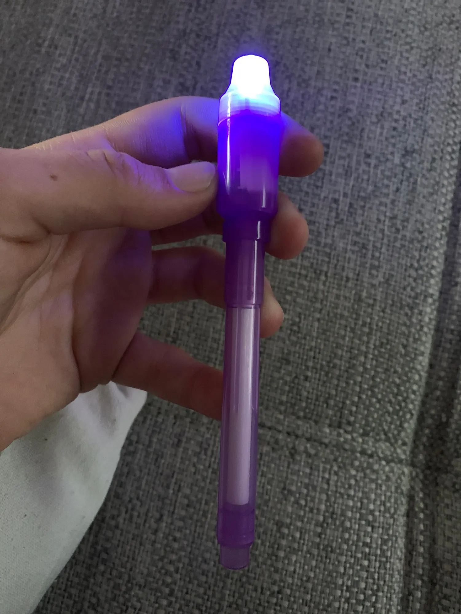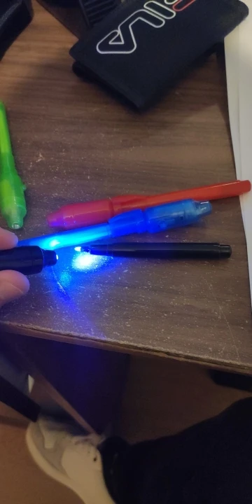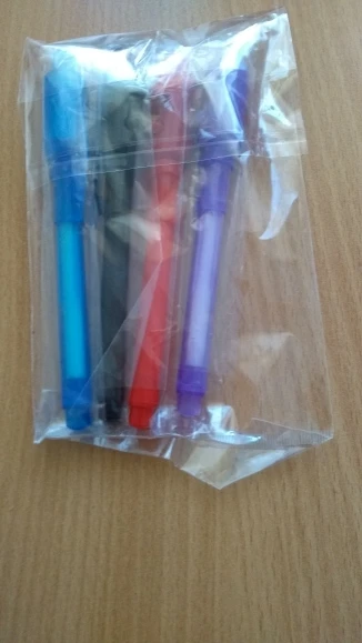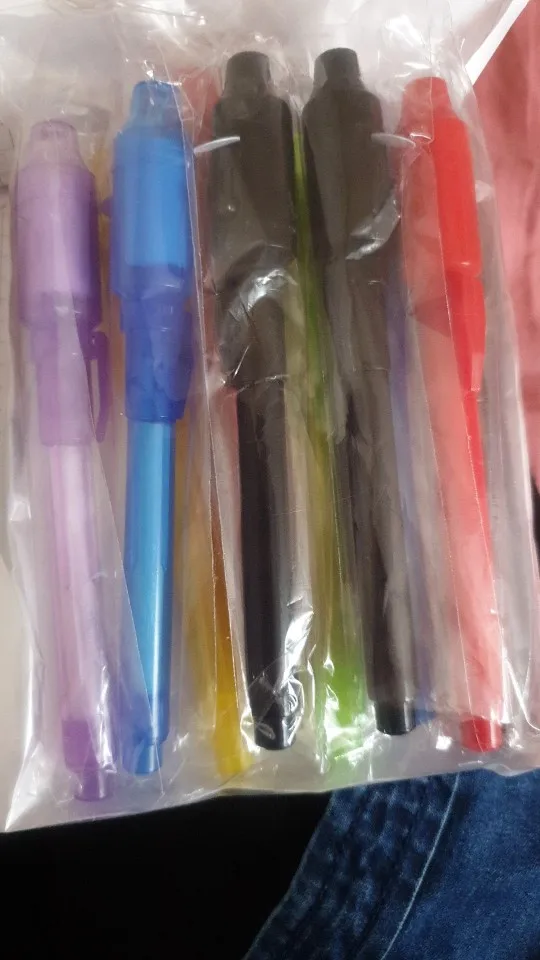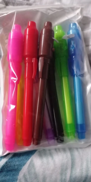 Ручки прибыли в идеальном состоянии. Они очень красивые. 6 разных цветов прибыли так же, как на фото продавца. Невидимые чернила и фонарик работают плавно.