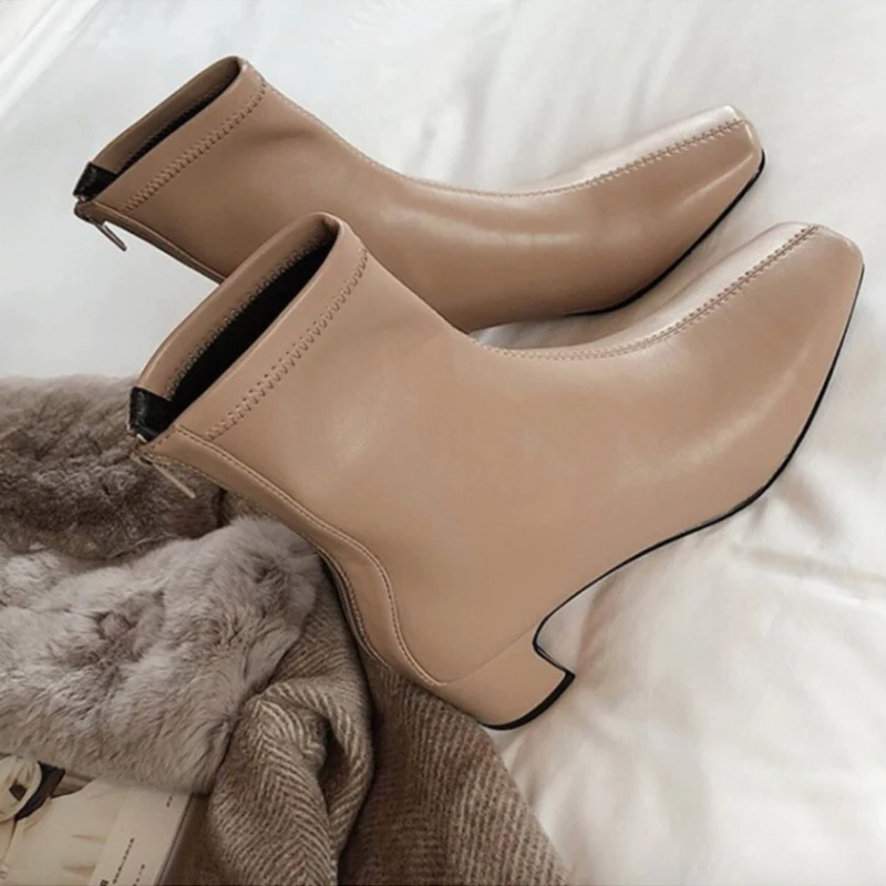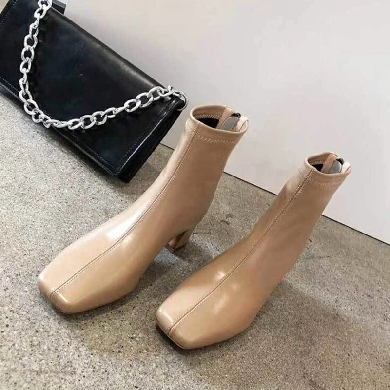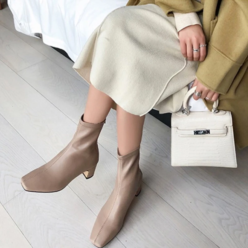 Женские полуботинки цвета хаки из ПУ кожи, на среднем каблуке