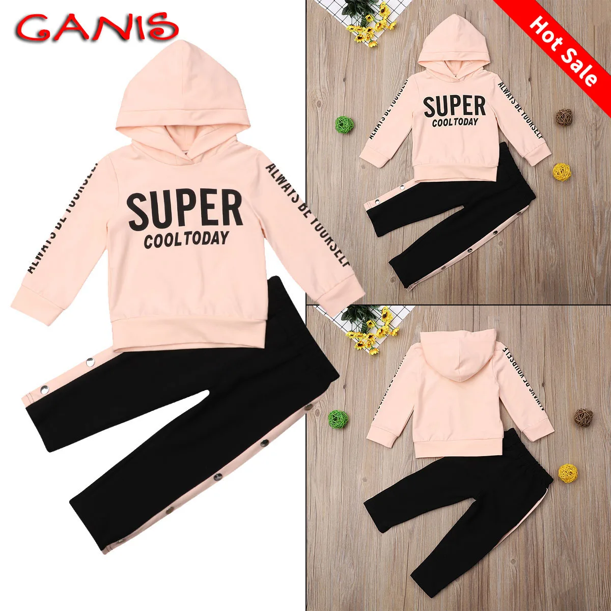 Спортивный костюм для девочек, с капюшоном и надписью