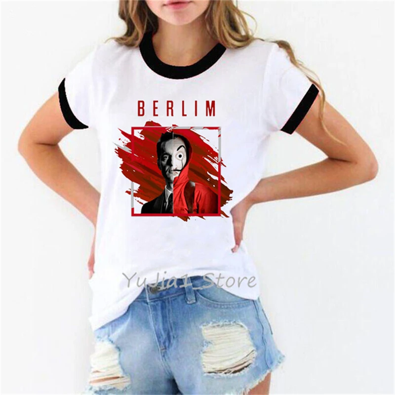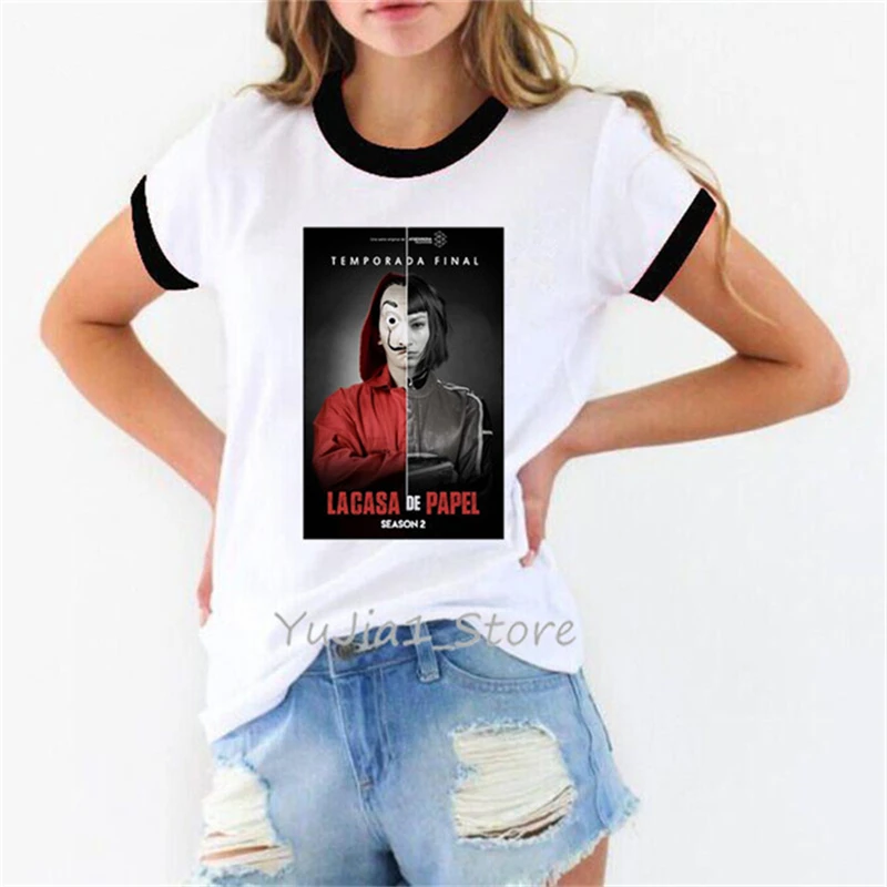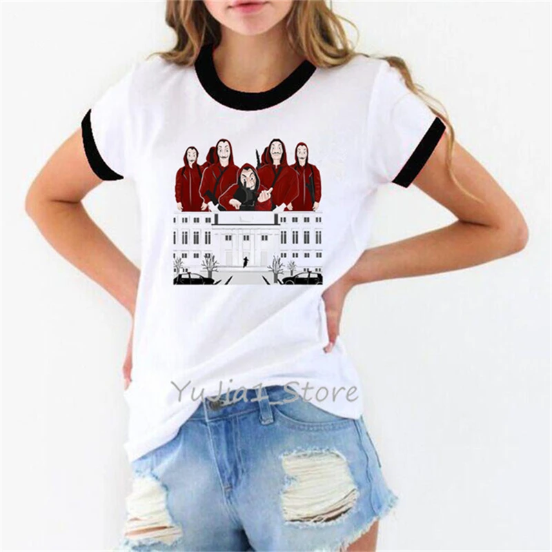 Женская забавная футболка La Casa De Papel, футболка с графическим принтом в Корейском стиле, топы