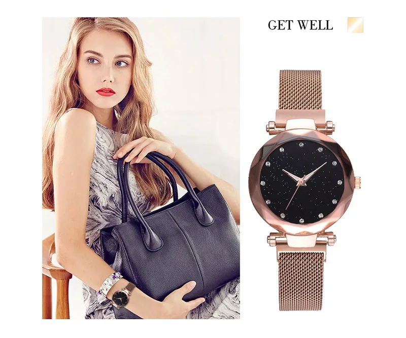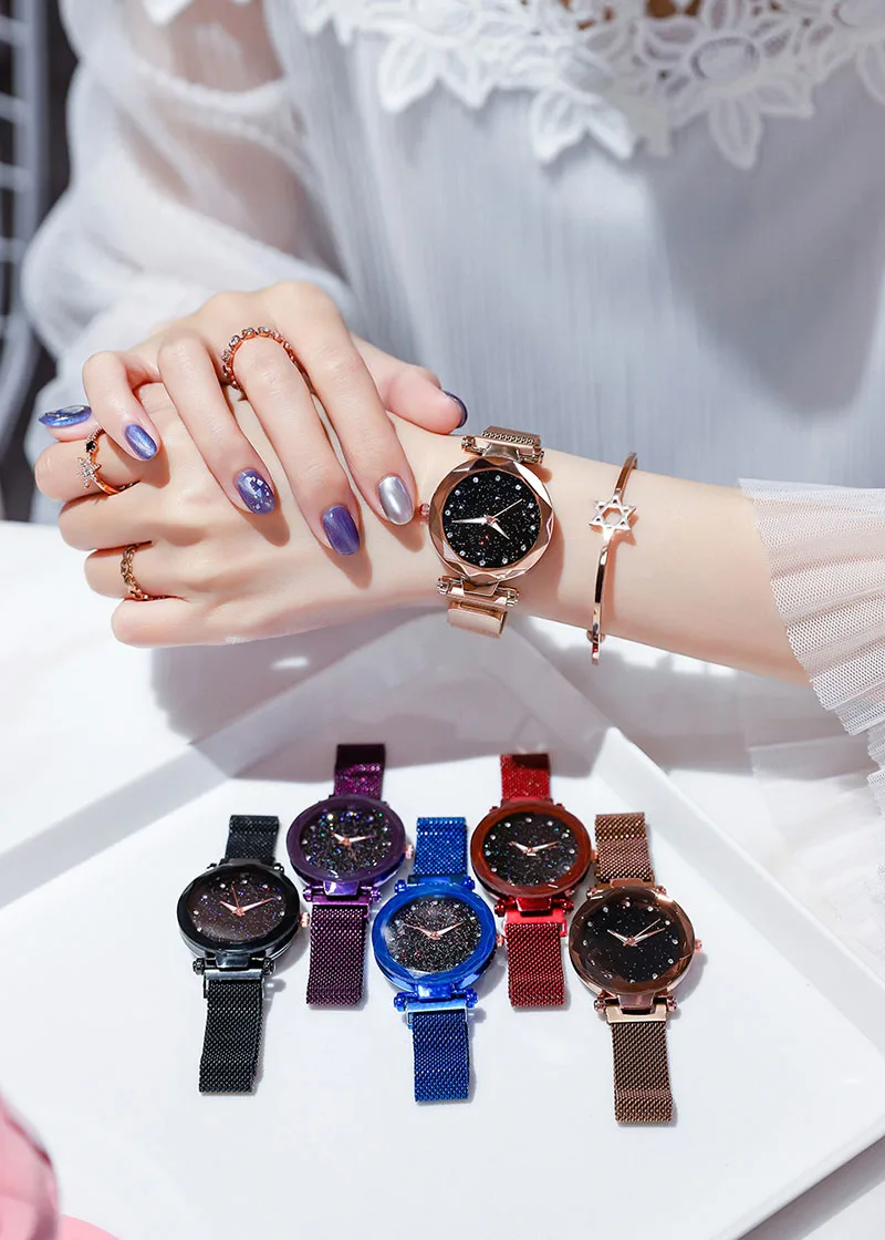 Роскошные женские часы, новинка 2019, женские часы со звездным небом, кристаллами, магнитные водонепроницаемые женские наручные часы, женские часы, женские часы