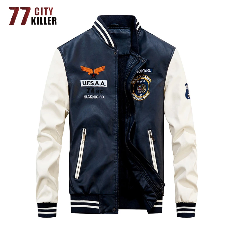 77City Killer 2020 новая кожаная куртка, мужская ветровка, мотоциклетные бейсбольные куртки в стиле пэчворк, мужская флисовая теплая куртка из искусственной кожи