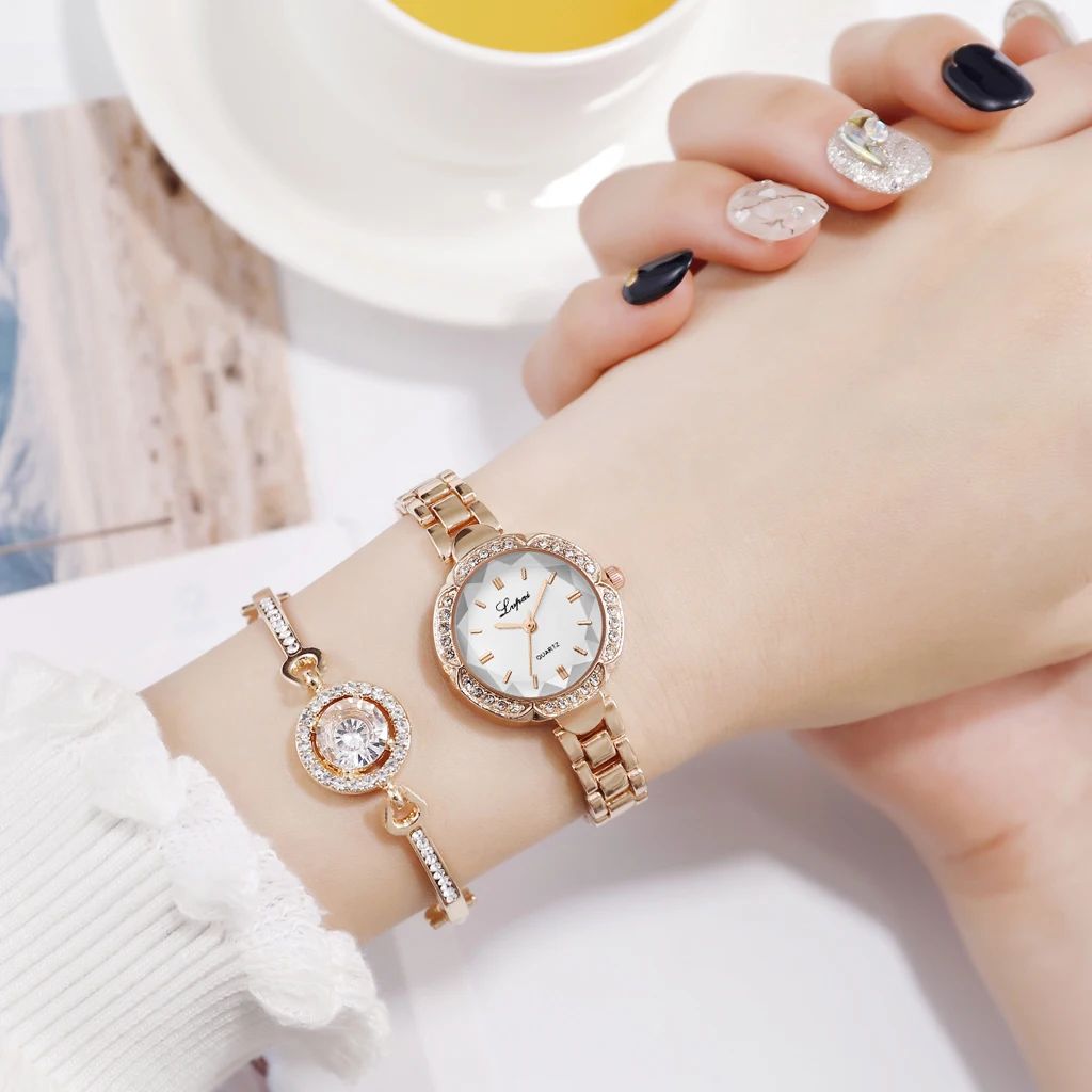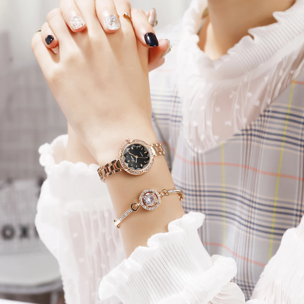 Женские часы-браслет с серебряными стразами, повседневные кварцевые наручные часы, комплект из 2 предметов