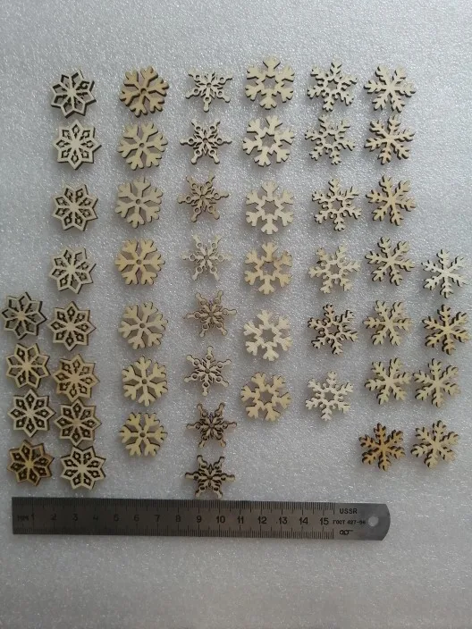 Декоративные подвесные Снежинки из натурального дерева, 50 шт., 62857