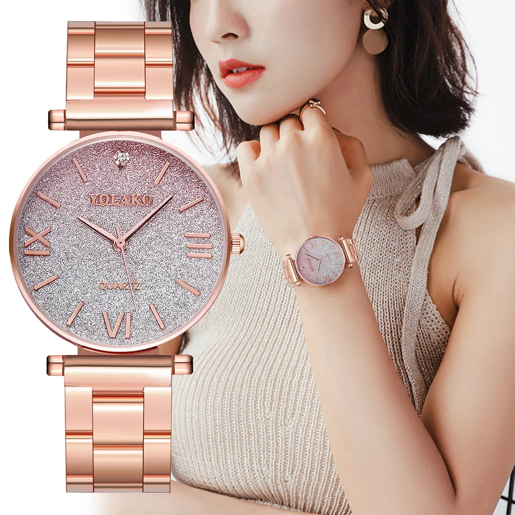 Роскошные женские часы Guadual цвета розовое золото женские наручные часы из нержавеющей стали Кварцевые часы Relogio Feminino Montre Femme подарокC
