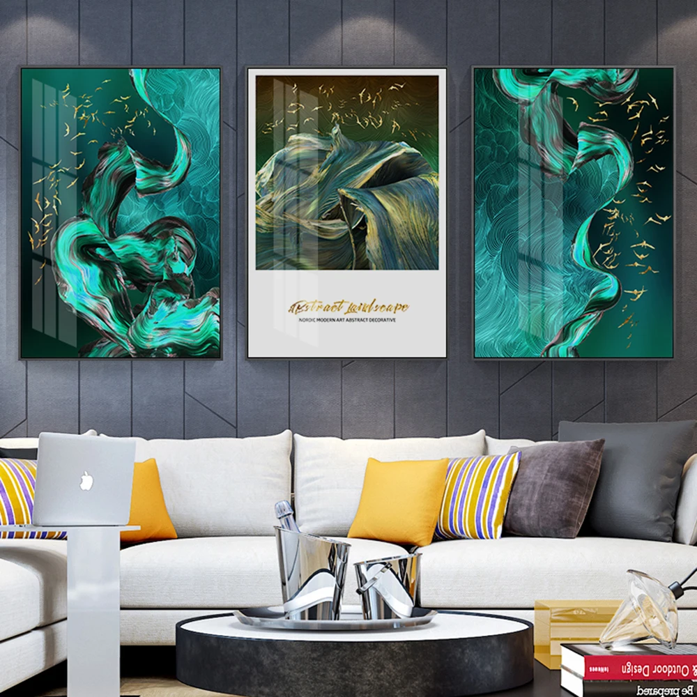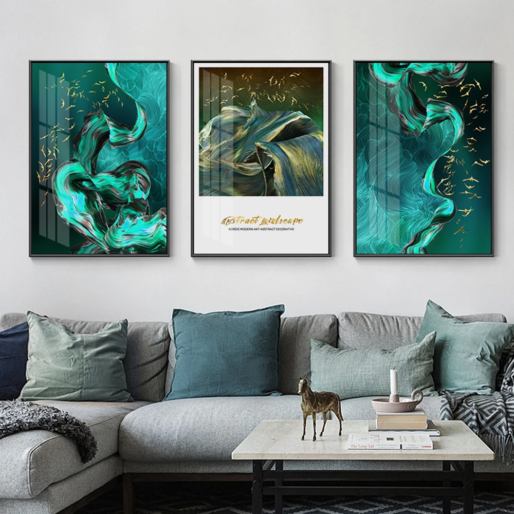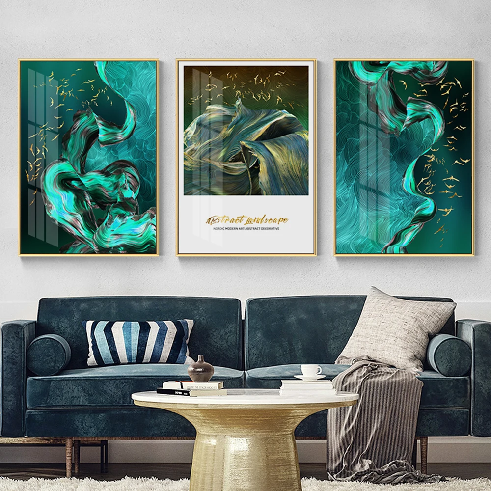 Красочные скандинавские современное искусство трехмерный абстрактный пейзаж птицы Триптих печать стены для украшения комнаты домашний декор