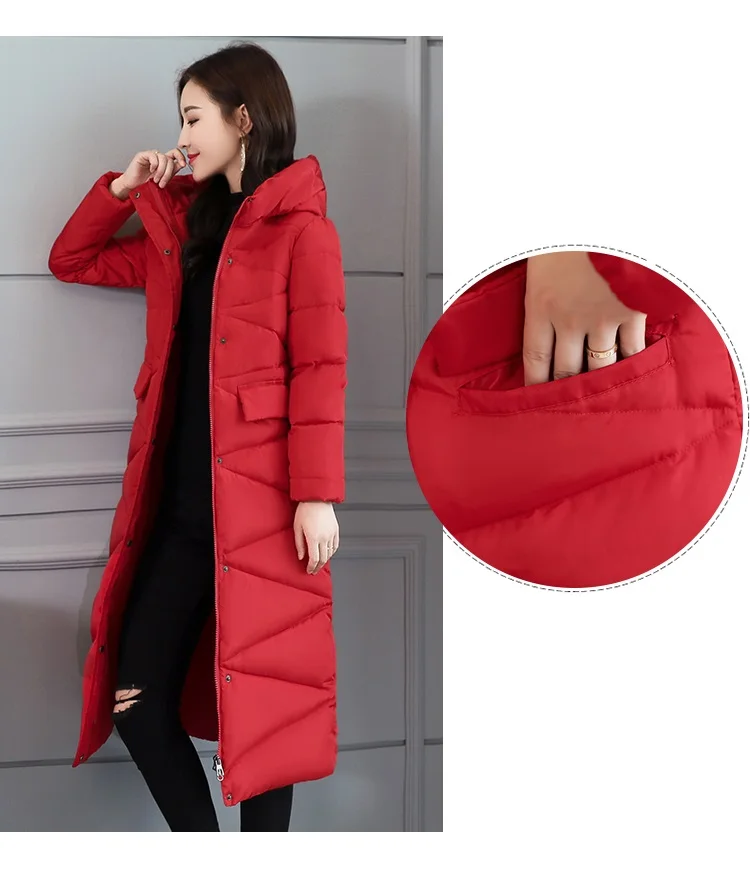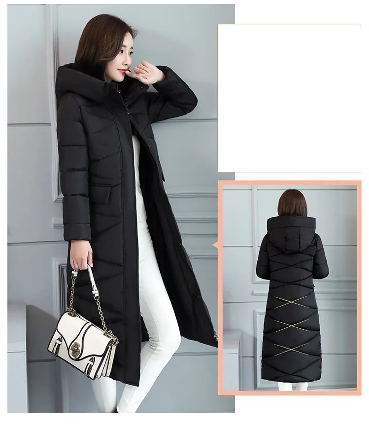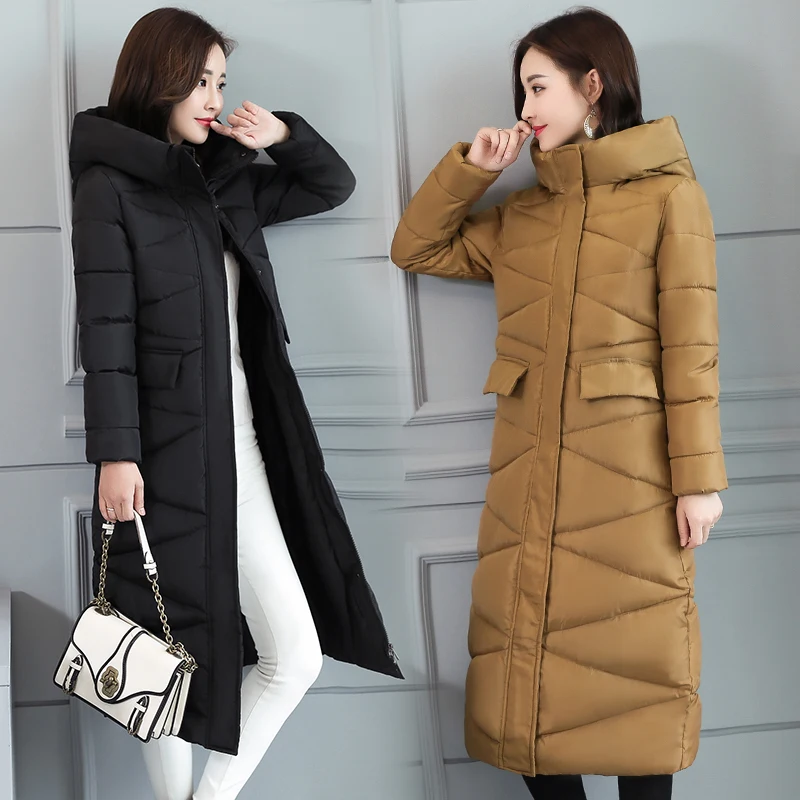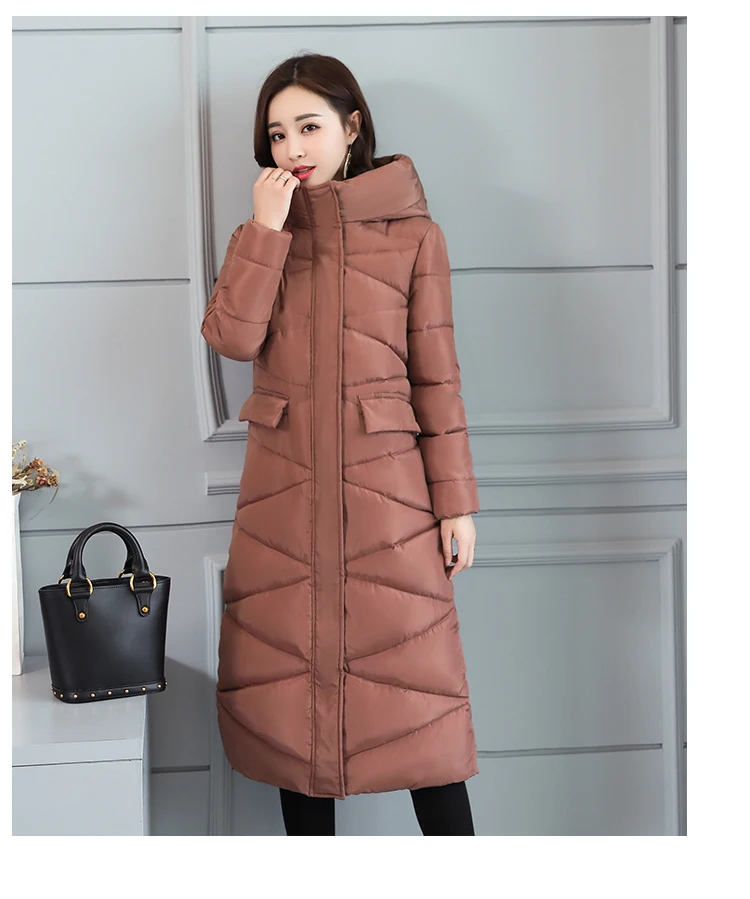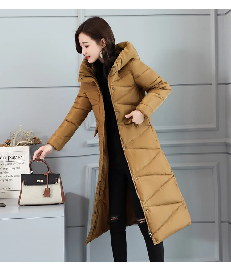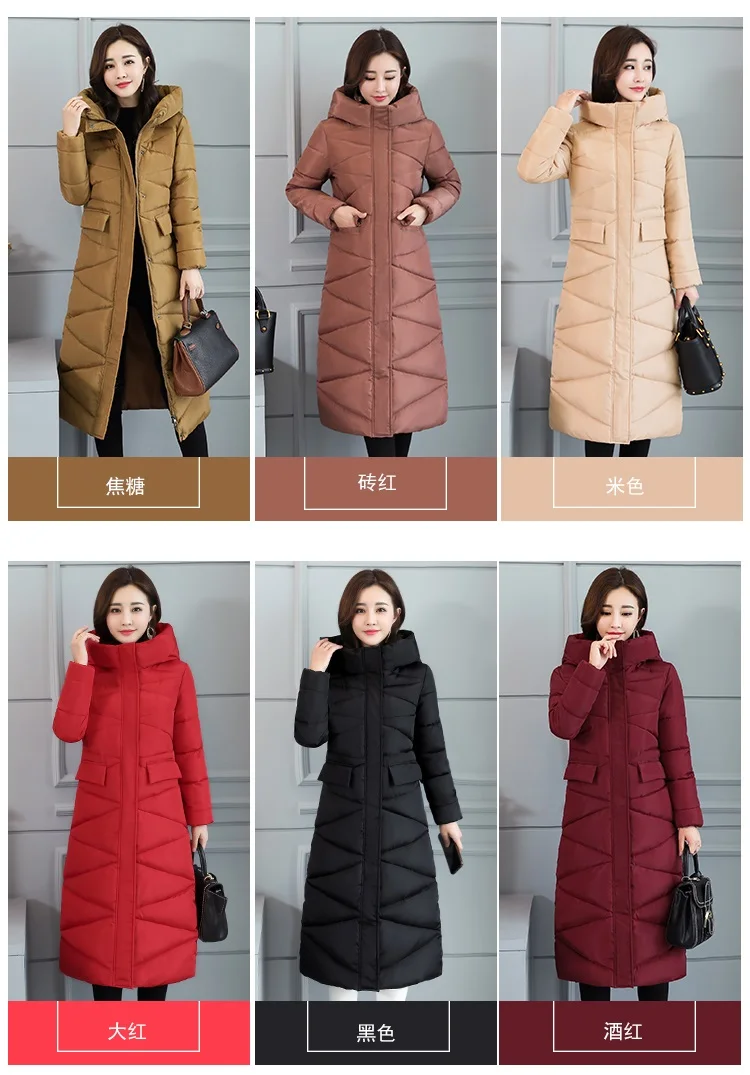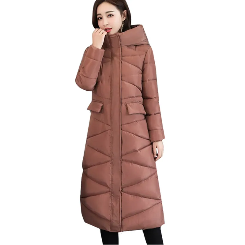 Модная Длинная женская парка, зимняя куртка 2021, приталенное Женское пальто с хлопковой подкладкой, верхняя одежда с капюшоном, парки, женские толстые теплые пальто