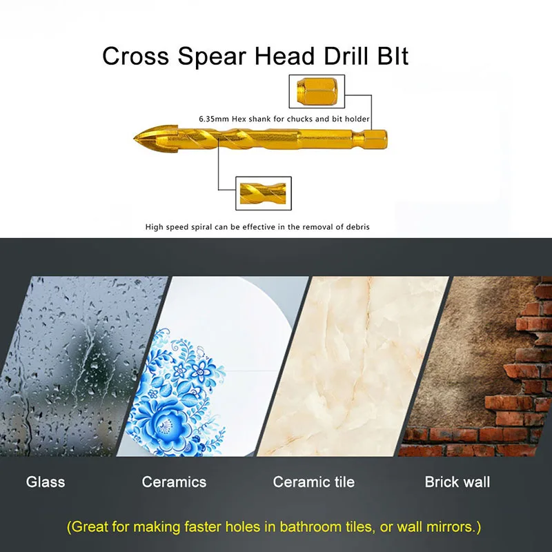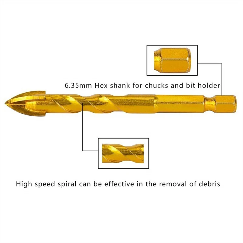 Сверло JUSTINLAU 681012 мм с шестигранным хвостовиком, твердосплавное сверло из титана и вольфрама, с перекрестной головкой для плитки, стекла