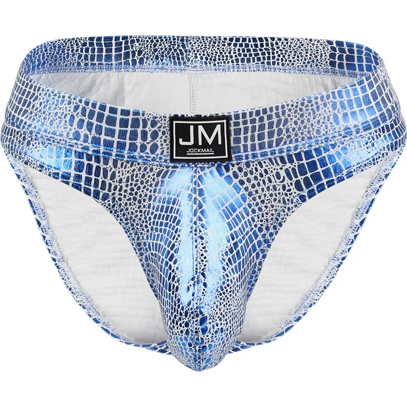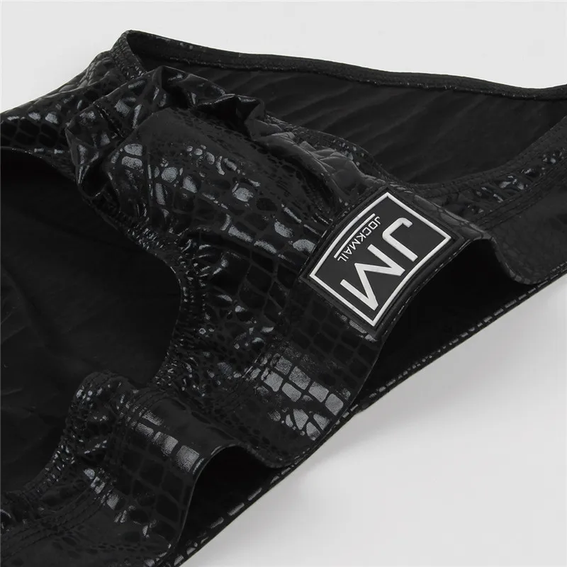 Трусы мужские Jockmail, бикини, сексуальное нижнее белье, из искусственной кожи, с U-образным выпуклым мешочком, гей-трусы