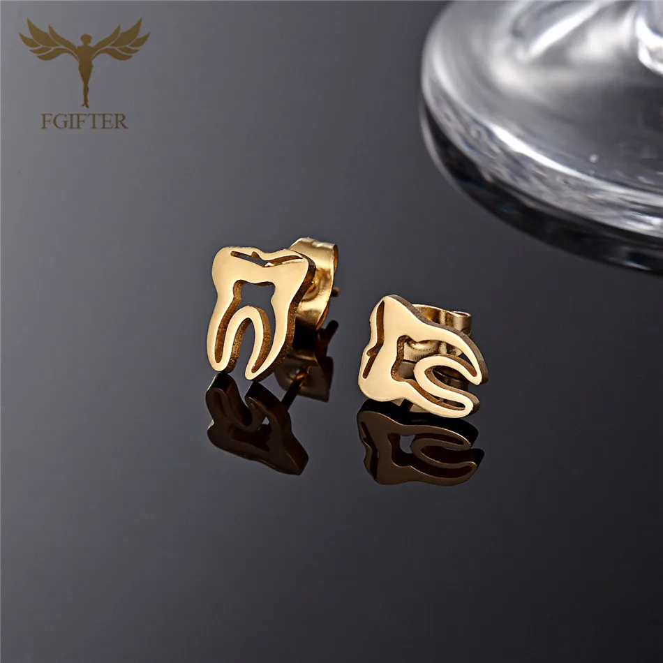 Милые детские серьги, серьги-гвоздики с зубами, Детские золотые серьги из нержавеющей стали для девочек и мальчиков, оптовая продажа