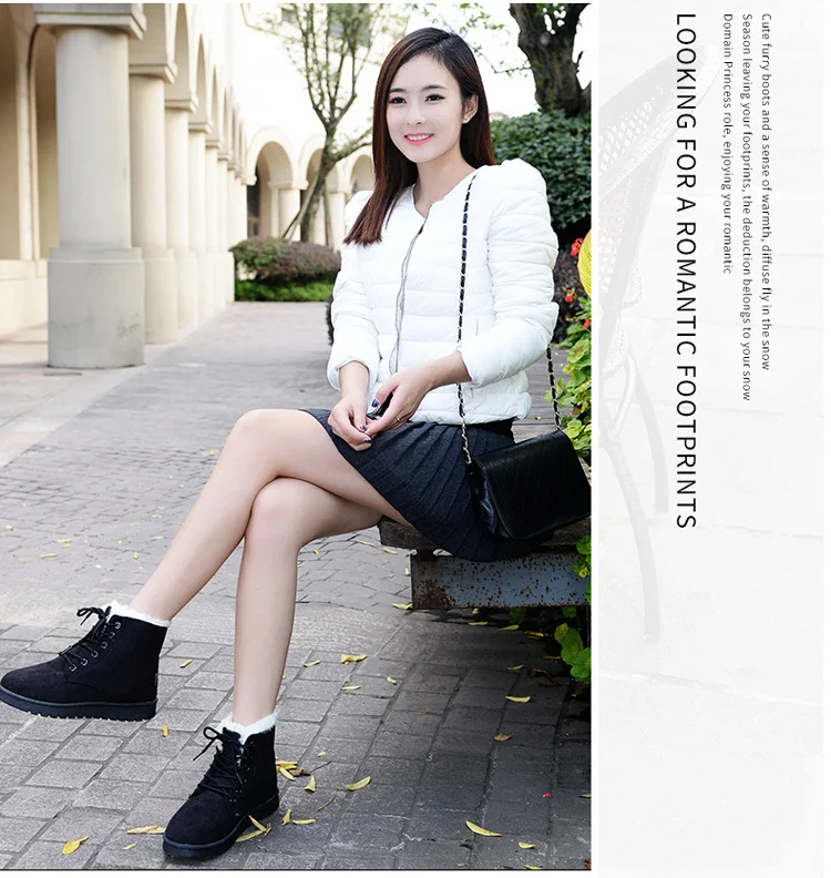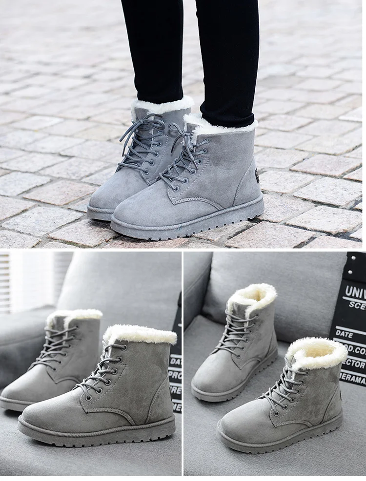 Женские ботинки; Теплая зимняя женская обувь; Женские ботинки из искусственной Замшевые полусапожки на шнуровке; Botas Mujer; Плюшевые женские черные зимние ботинки