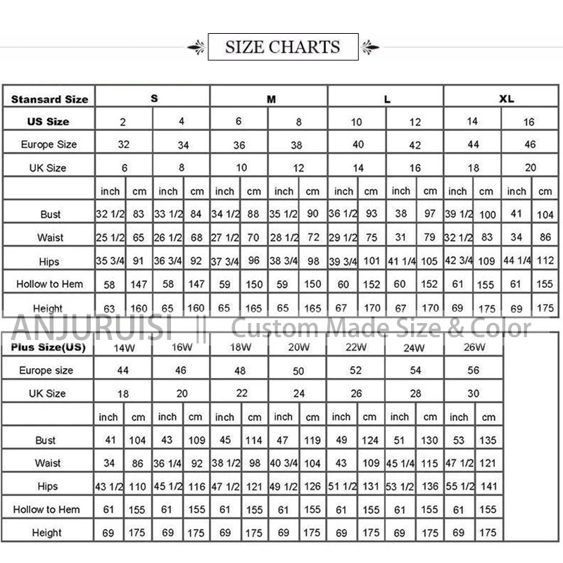 При размещении заказа, если у вас нет стандартного размера, пожалуйста, напишите свой подробный размер. Если вы стандартный размер, проверьте нашу таблицу размеров, мы делаем размер платья в соответствии с нашей таблицей размеров.