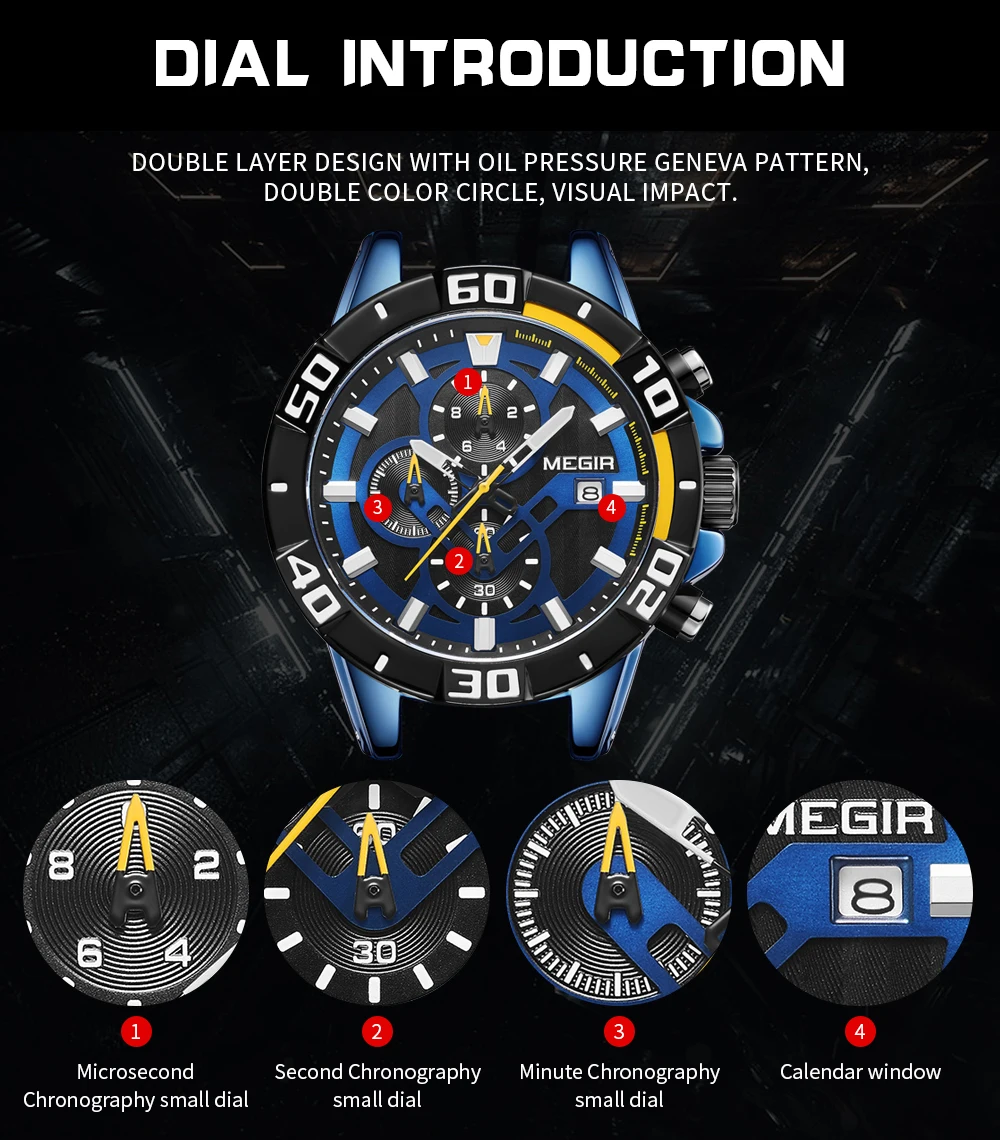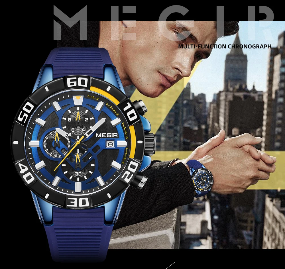 Часы MEGIR мужские наручные кварцевые, модные роскошные спортивные водонепроницаемые Брендовые с хронографом в стиле милитари, 2121