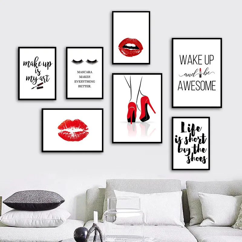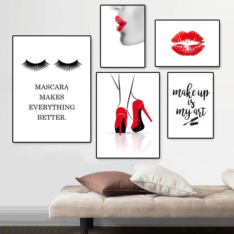 Модная Настенная картина с ресницами и губами, современные постеры и принты для макияжа, художественная Цитата Kартина, украшение для спальни, домашний декор HD2730