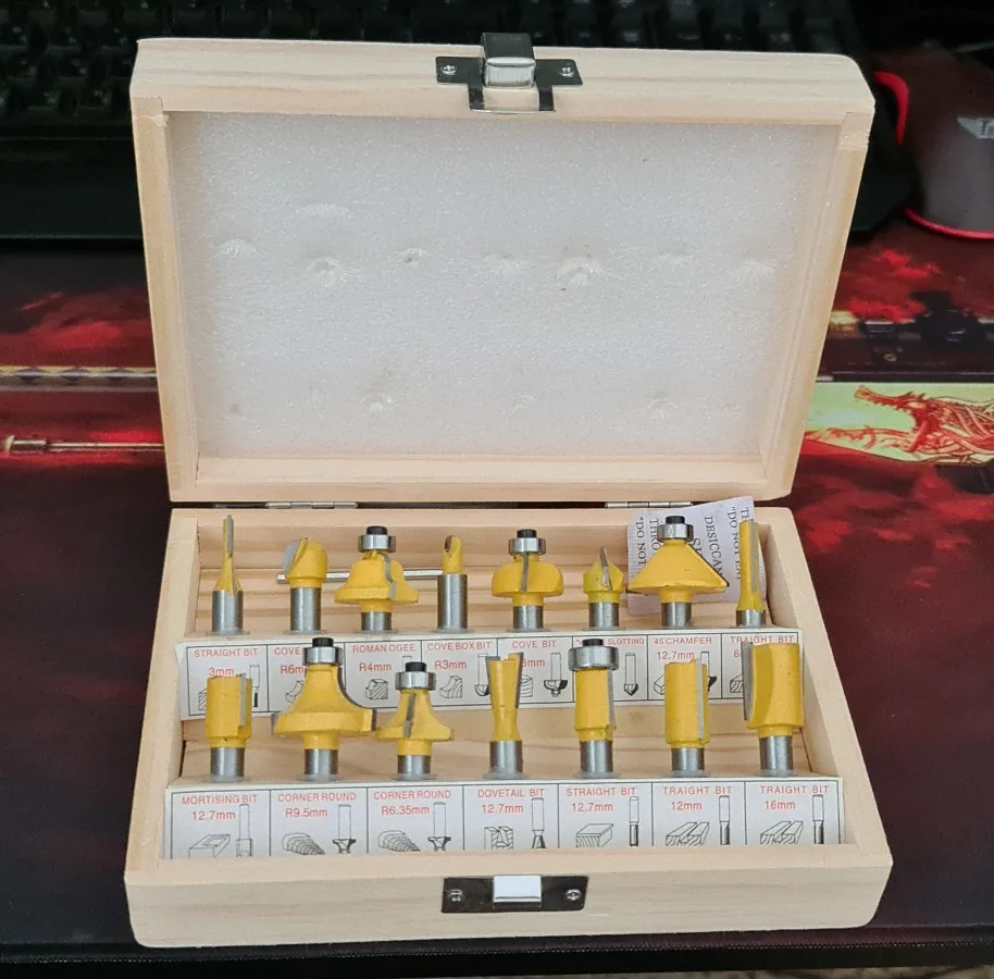 нормальный набор фрез. На первое время (набить руку новичкам) самое то. Продавца и товар советую, все по описанию. Фрезы пришли промаслянные, не забудьте протереть