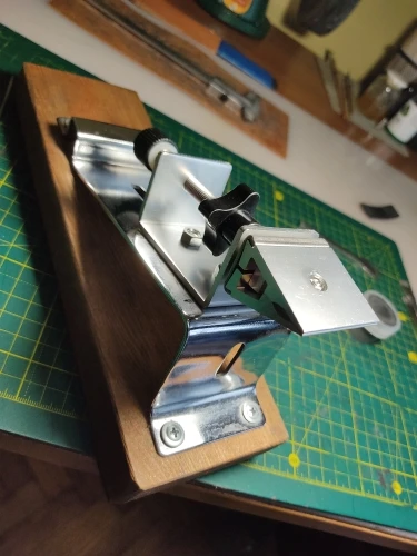 зажим пришел по имл почте очень быстро.На точилку пока не устанавливал,жду шарниры. По другим отзывам должно работать,надеюсь.Если что ,дополню.