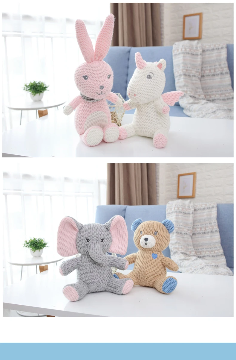 Детские вязаные мягкие животные успокаивающие Единорог куклы девочки кролик медведь слон искусственная плюшевая игрушка для детей реквизит для фотосъемки