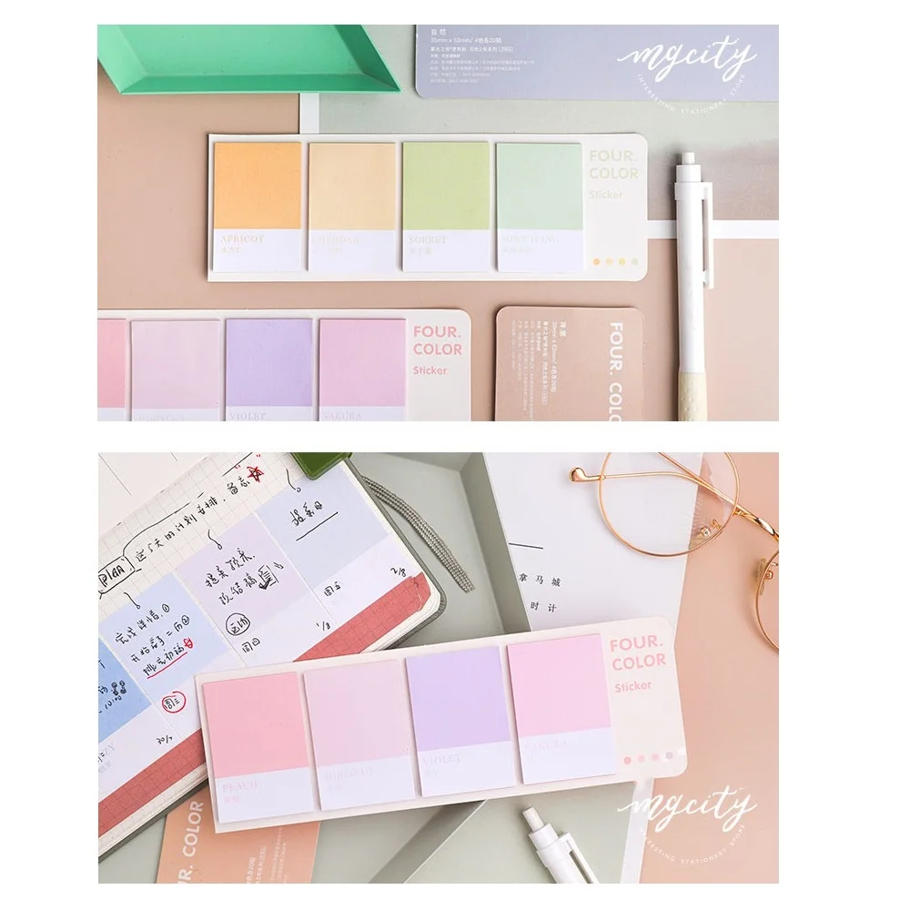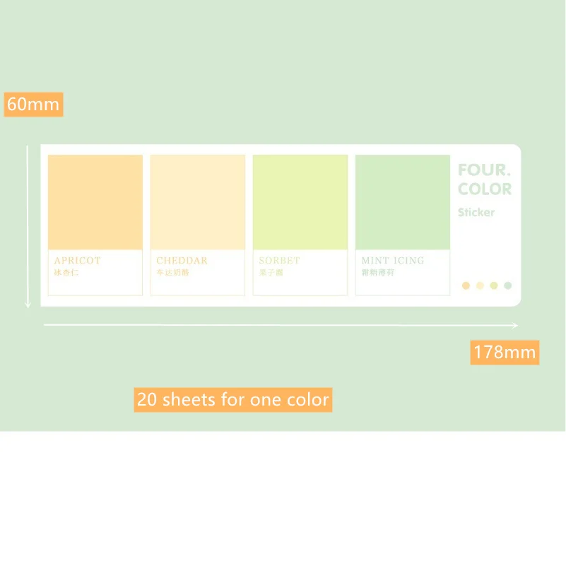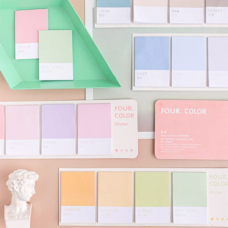 Стикеры для записей, 4 шт., однотонные, 4 цвета