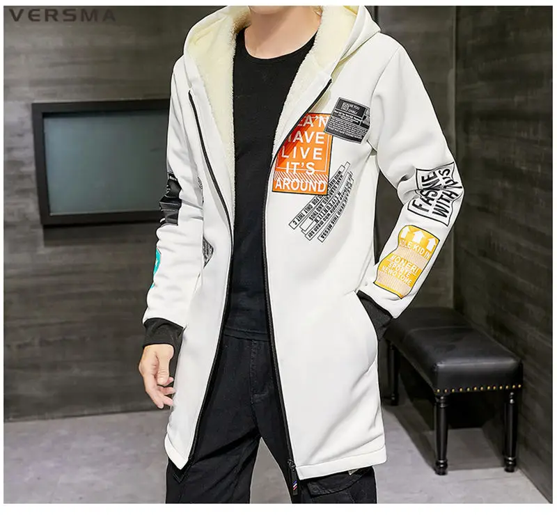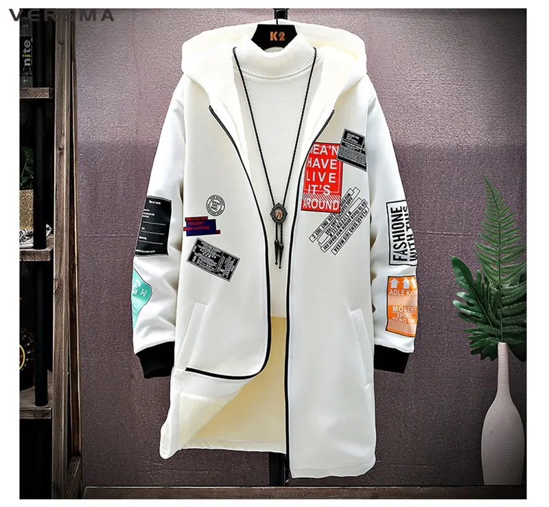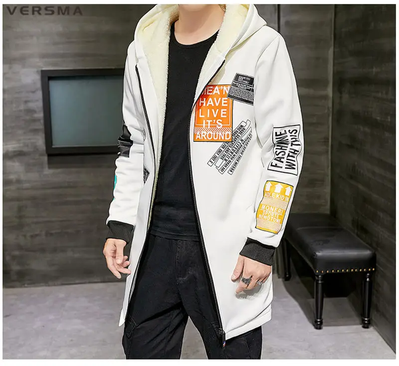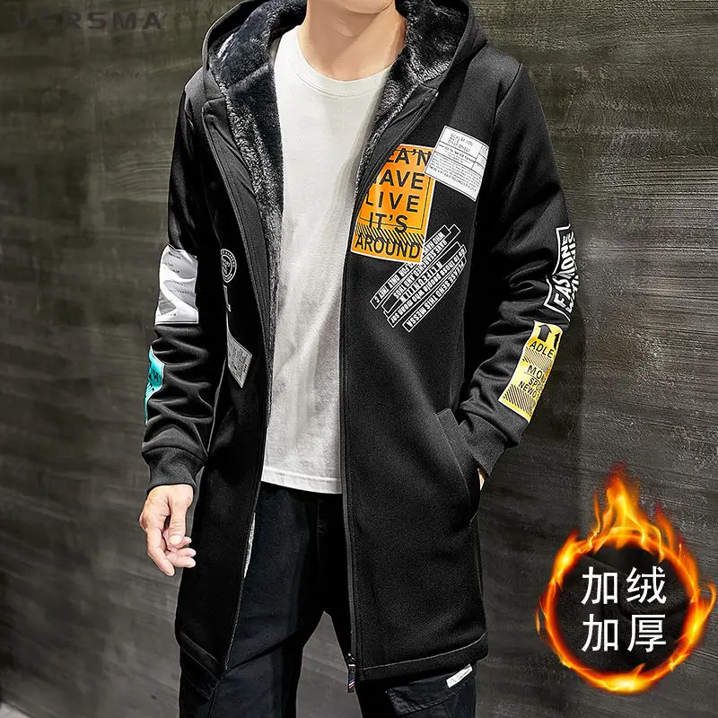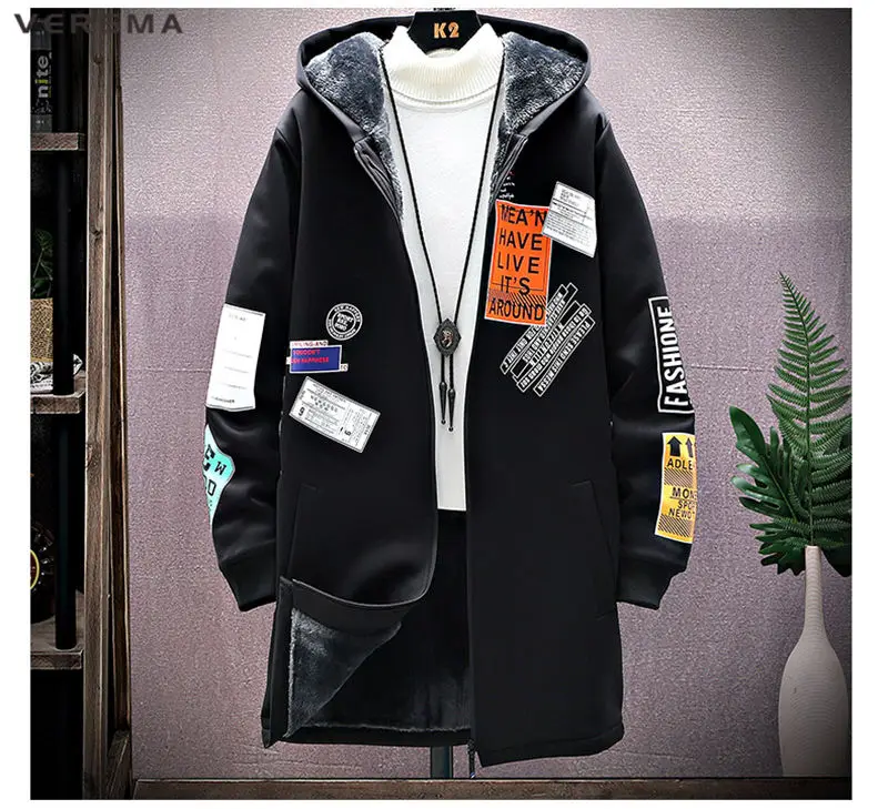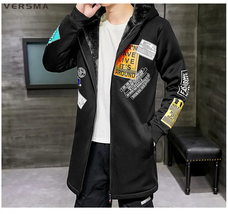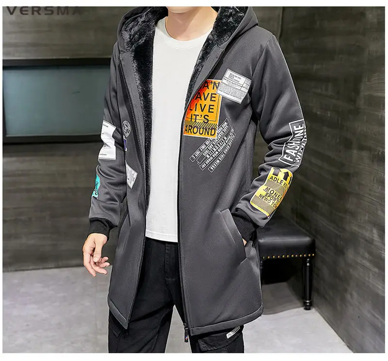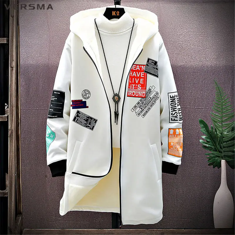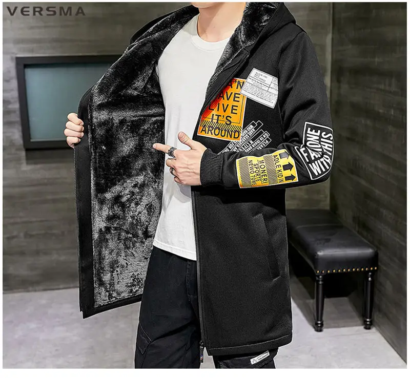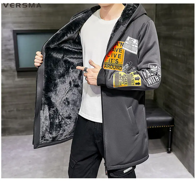 VERSMA зимняя куртка в Корейском стиле кепки, кепки в стиле Толстая Длинная ветровка Тренч Для мужчин в стиле хип-хоп Крупногабаритные Готический Для мужчин длинная куртка-парка Dropshippping