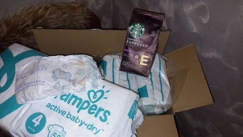 Доставка курьером. Кофе не было. Подгузники маломерят.