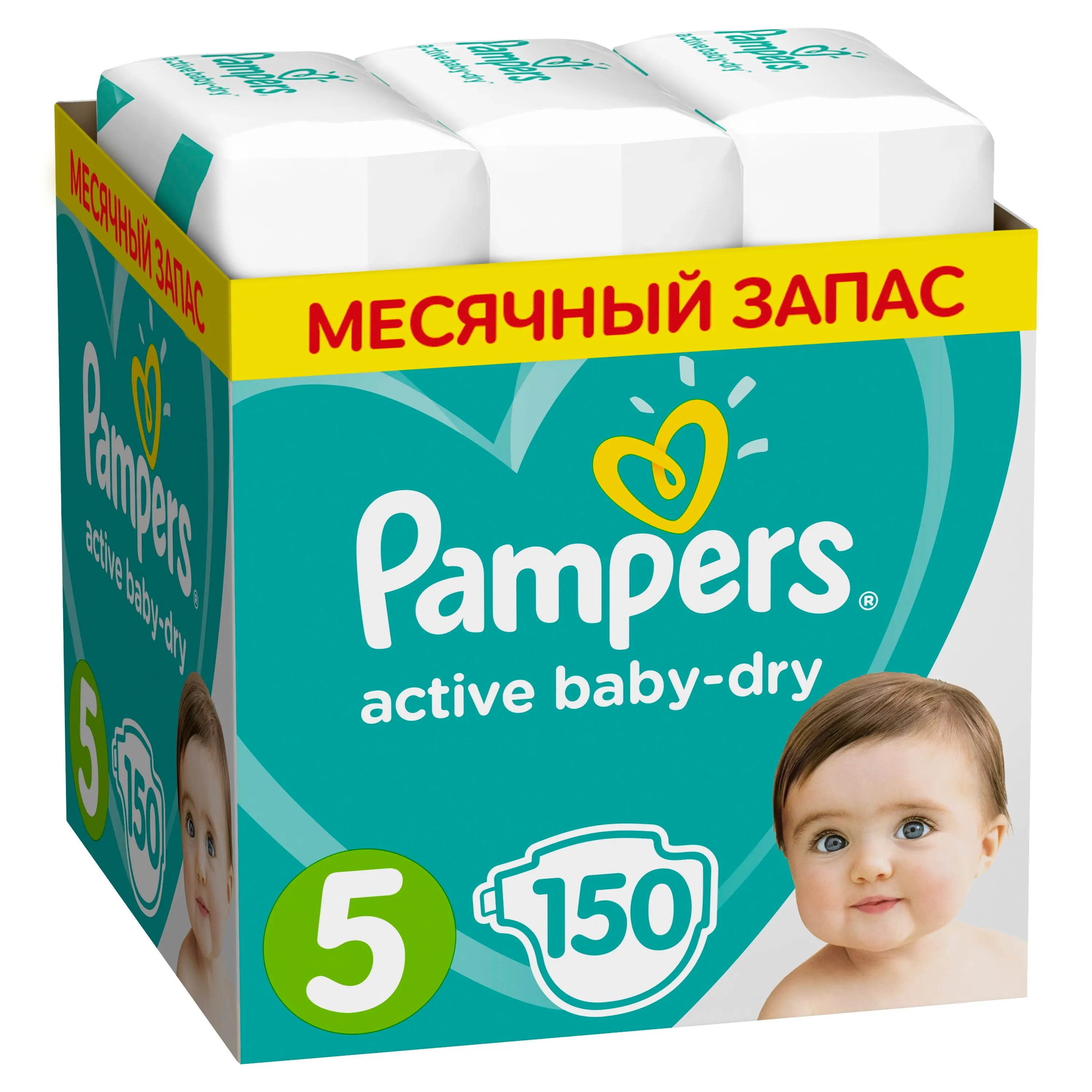 Подгузники Pampers Active Baby-Dry 11–16 кг, размер 5, 150шт.