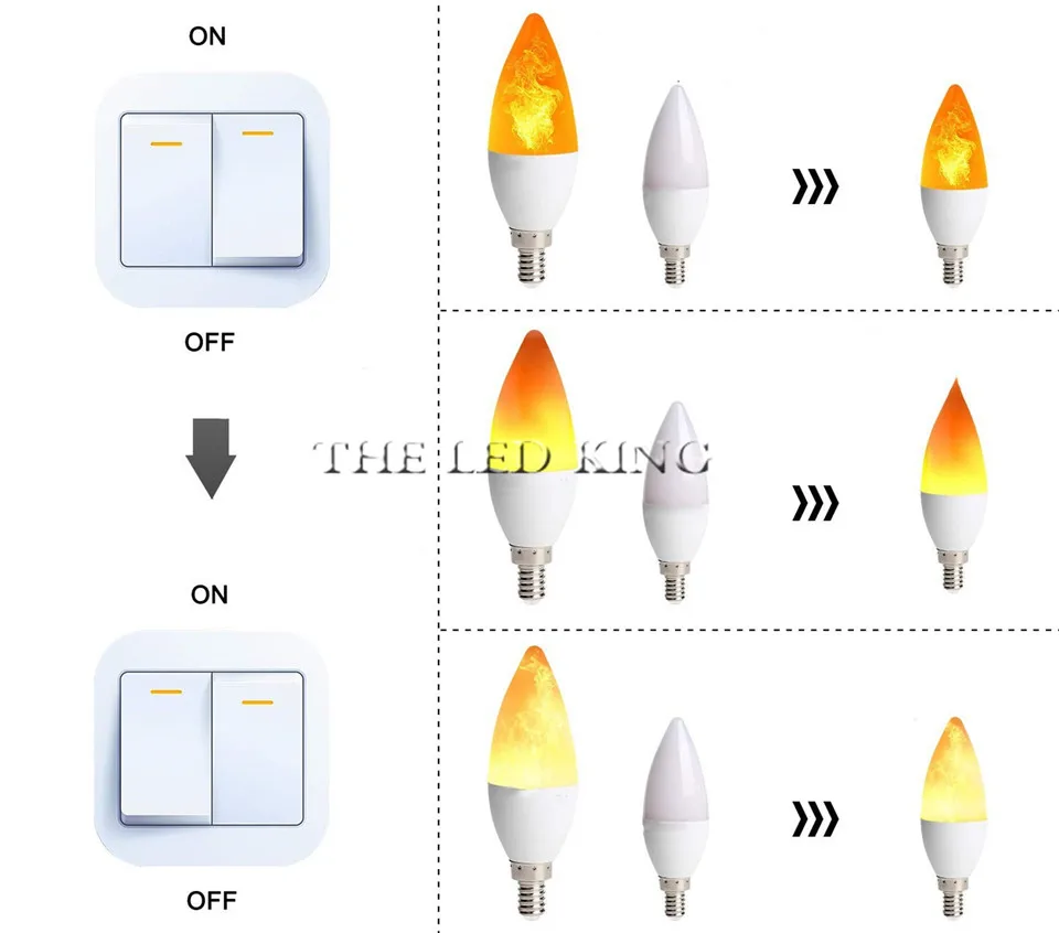 Тип товара: светодиодный светильник с эффектом пламени Тип цоколя: E26 /E27/E14/E12/B22 Тип формы: трубчатый Материал корпуса: поликарбонат (сопротивление 105 ℃) Напряжение: 85-265 В переменного тока Мощность: 3 Вт 5 Вт 9 Вт 15 Вт Цветовая температура: 1900-2200K (теплый белый) Угол луча: 360 градусов Переключение: выключатель питания