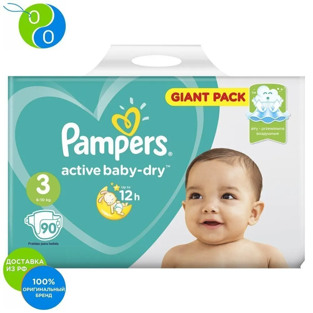 Подгузники Pampers Active Baby-Dry 6–10 кг, размер 3, 90 шт.