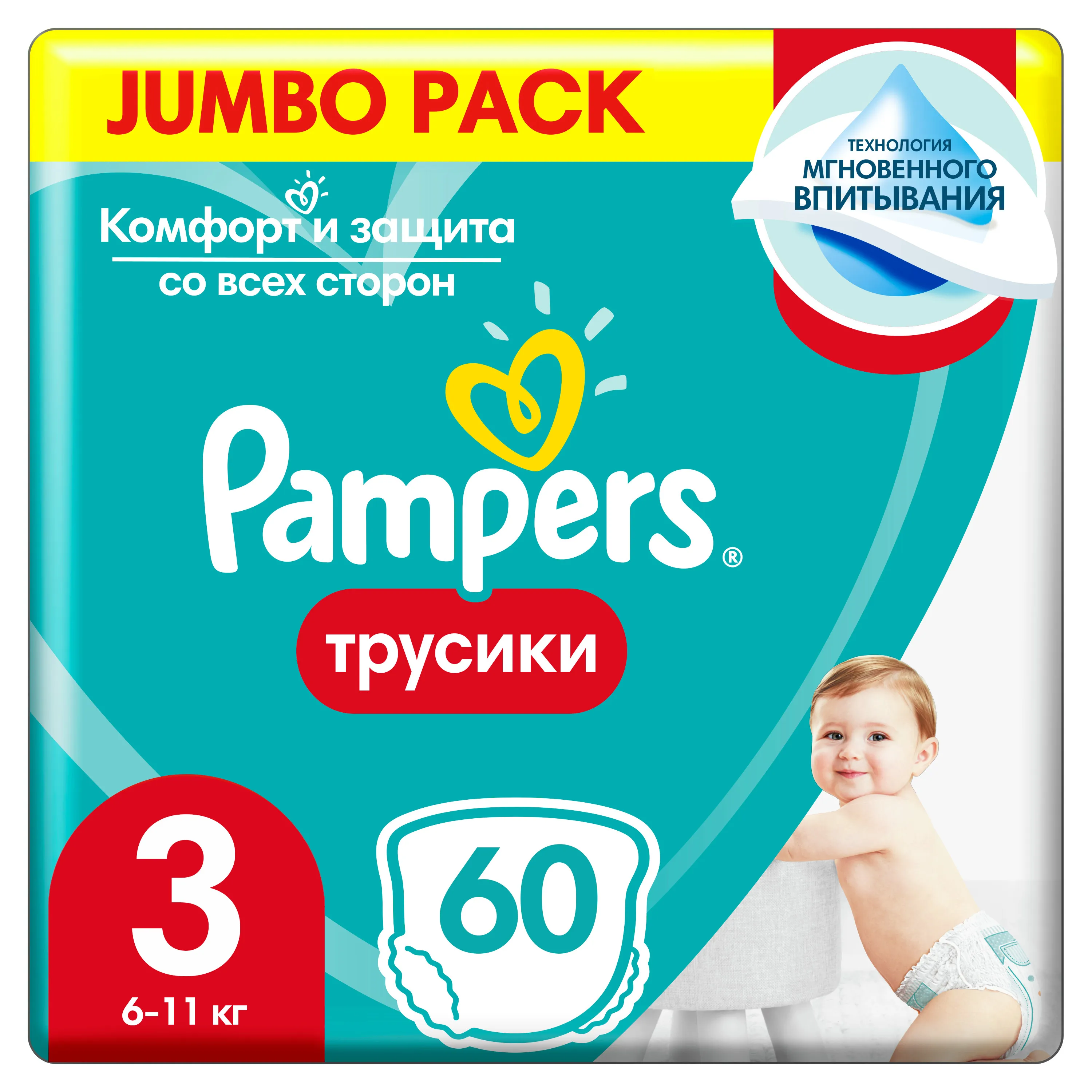 Подгузники-трусики Pampers Pants 6-11 кг, размер 3, 60шт.
