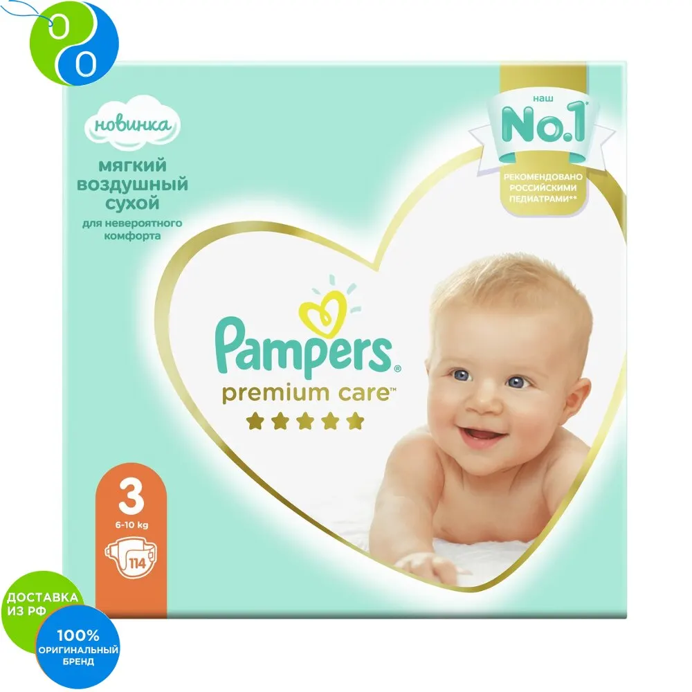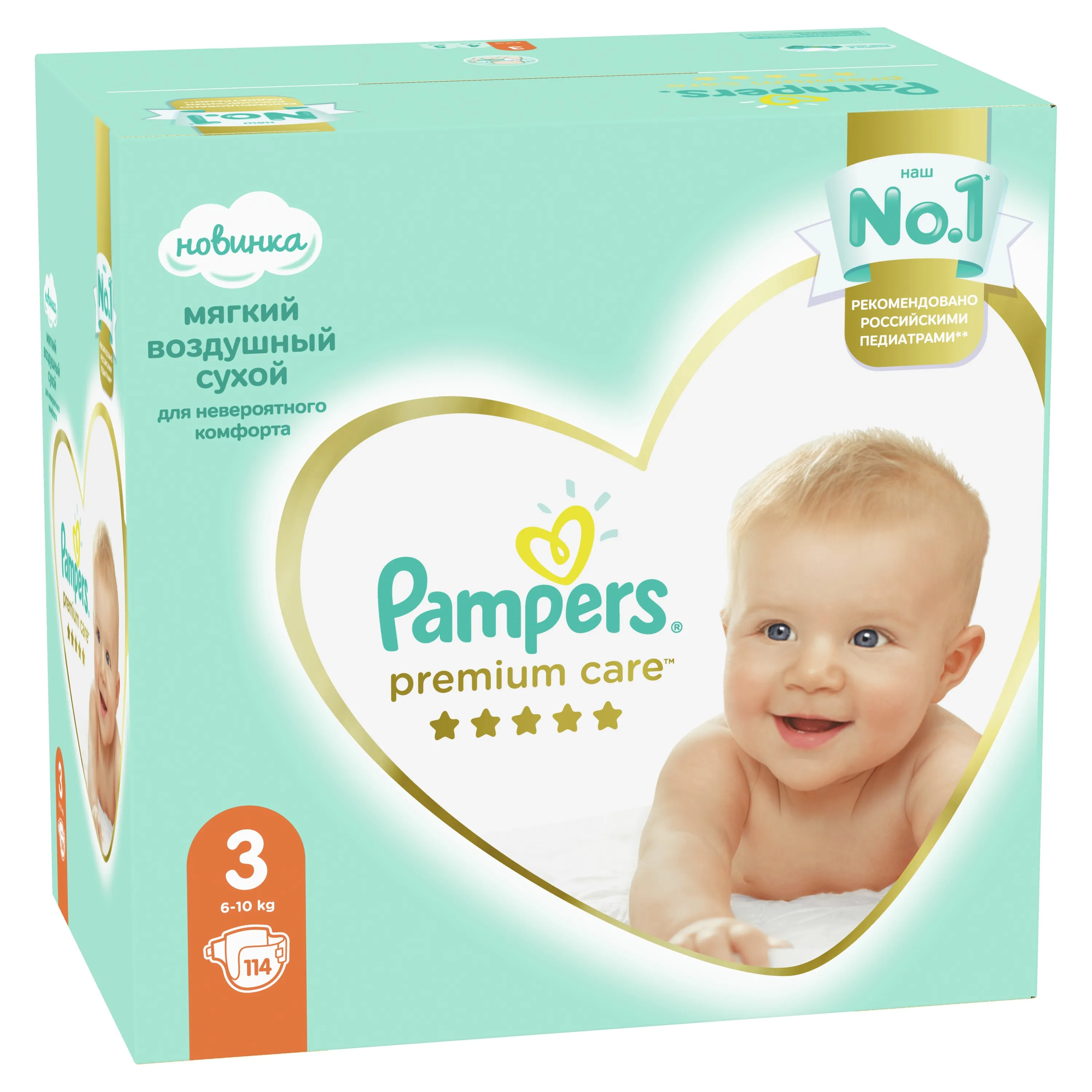 Подгузники Pampers Premium Care Размер 3, 6-10кг, 114шт.