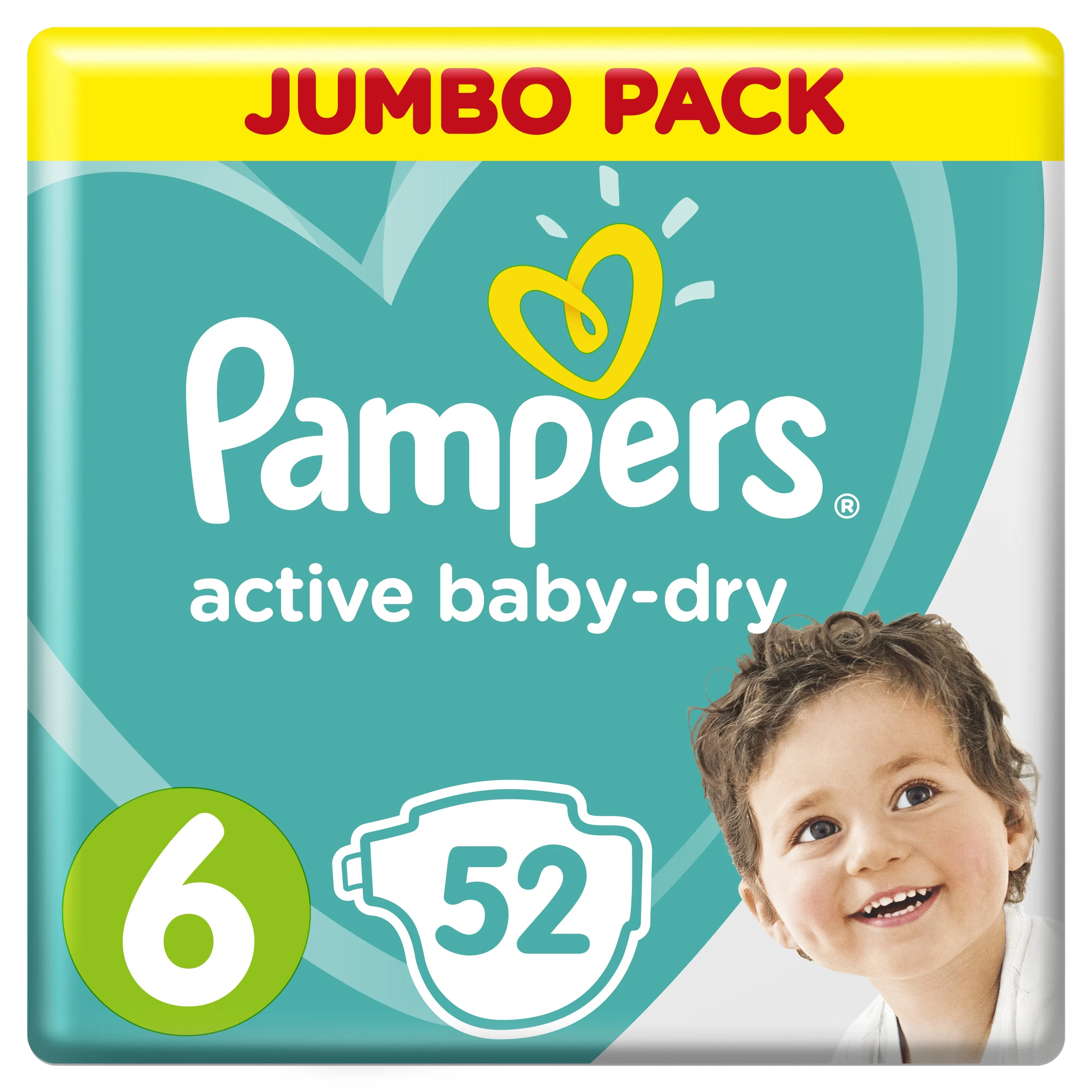 Подгузники Pampers Active Baby-Dry 13–18 кг, размер 6, 52шт.