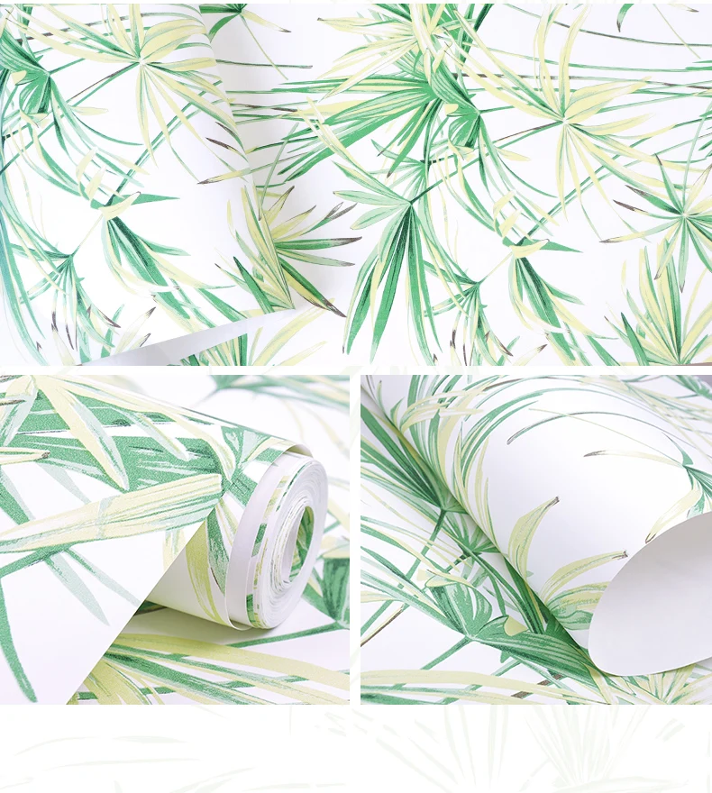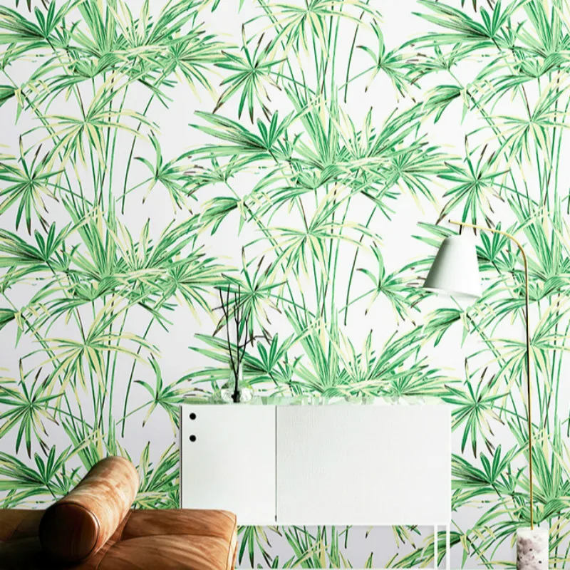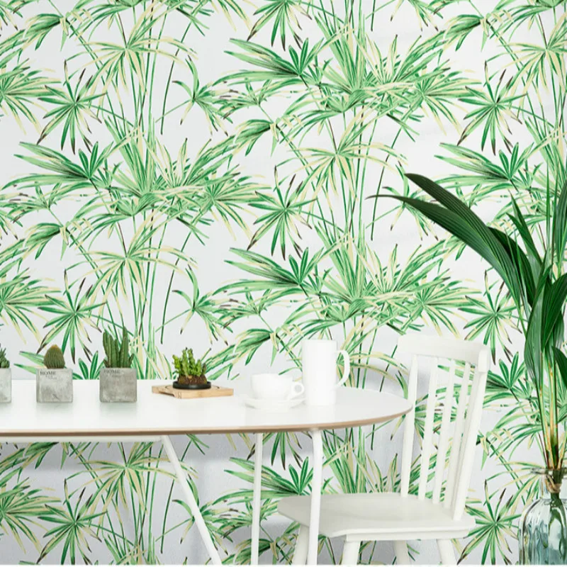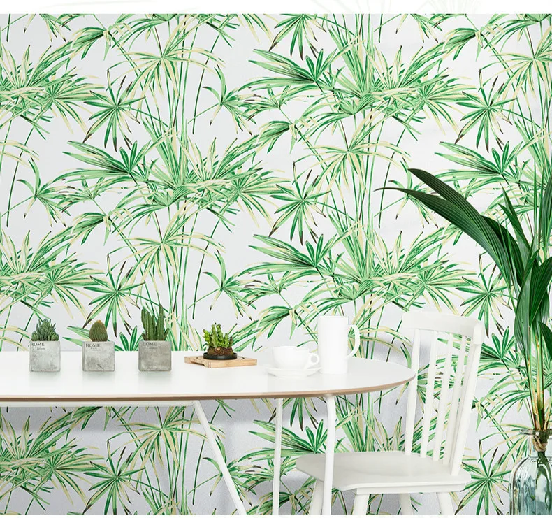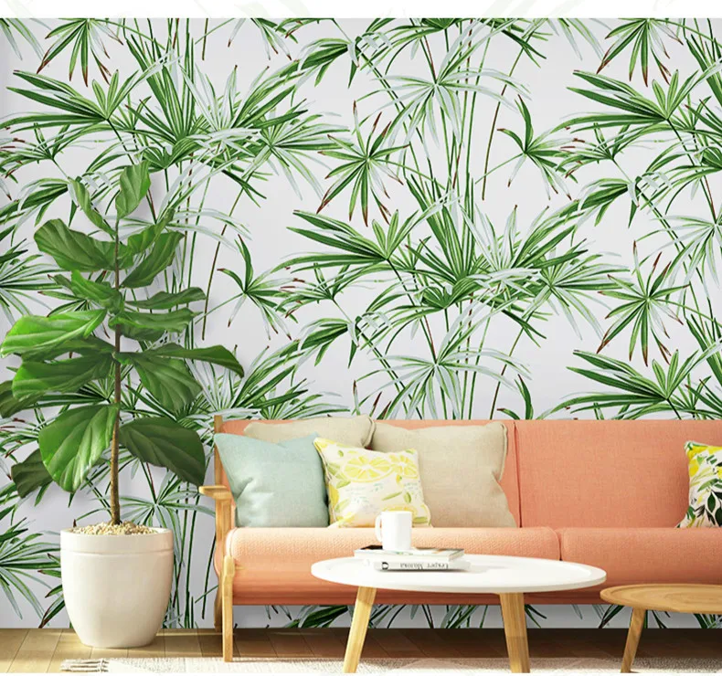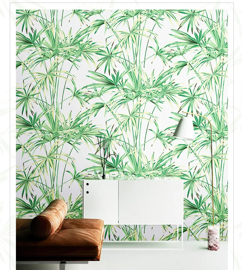 Зеленые листья тропические обои из натурального бамбука