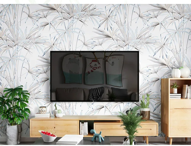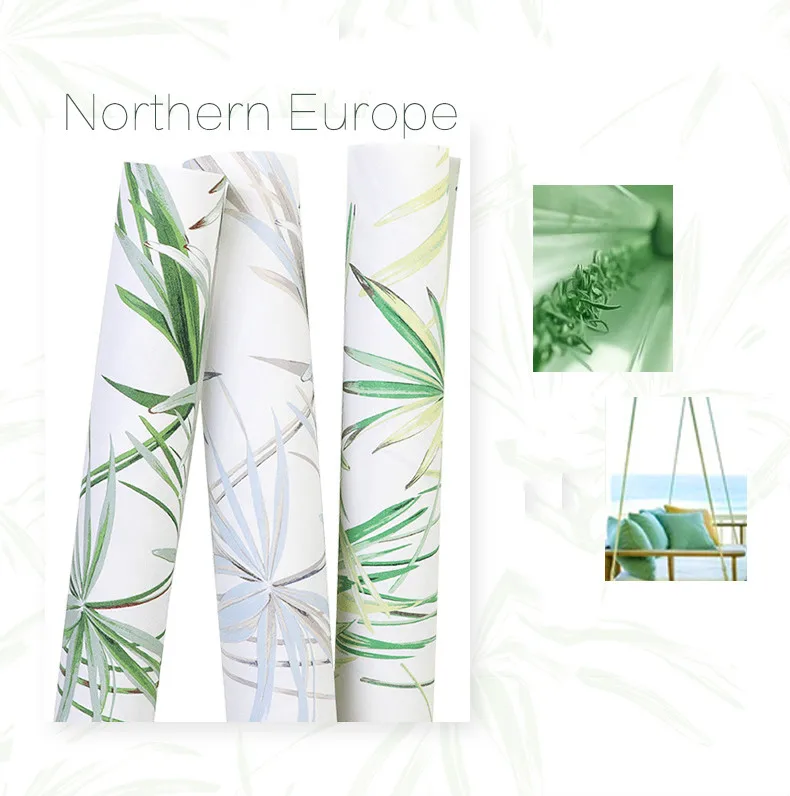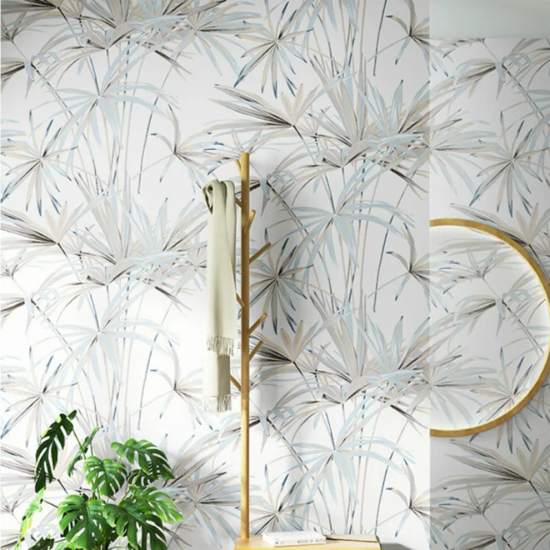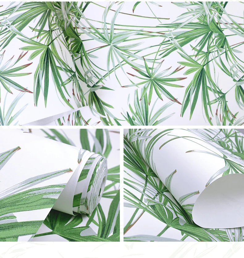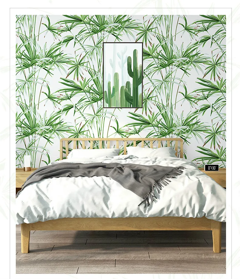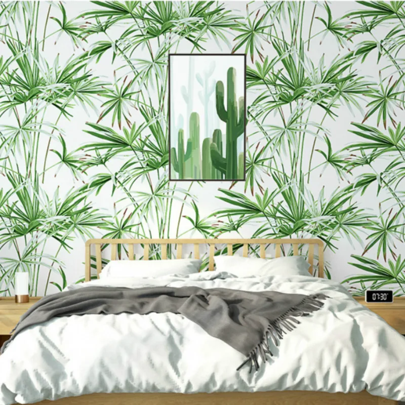 Зеленые листья тропические обои из натурального бамбука