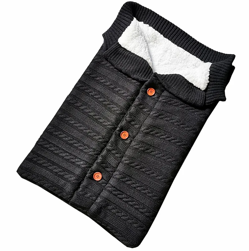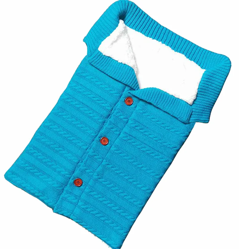 Детский вязаный теплый спальный мешок для пеленания, одеяло на пуговицах, флисовое плотное осенне-зимнее теплое одеяло для коляски, 68*40 см