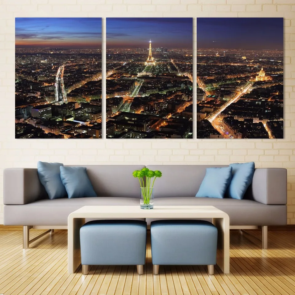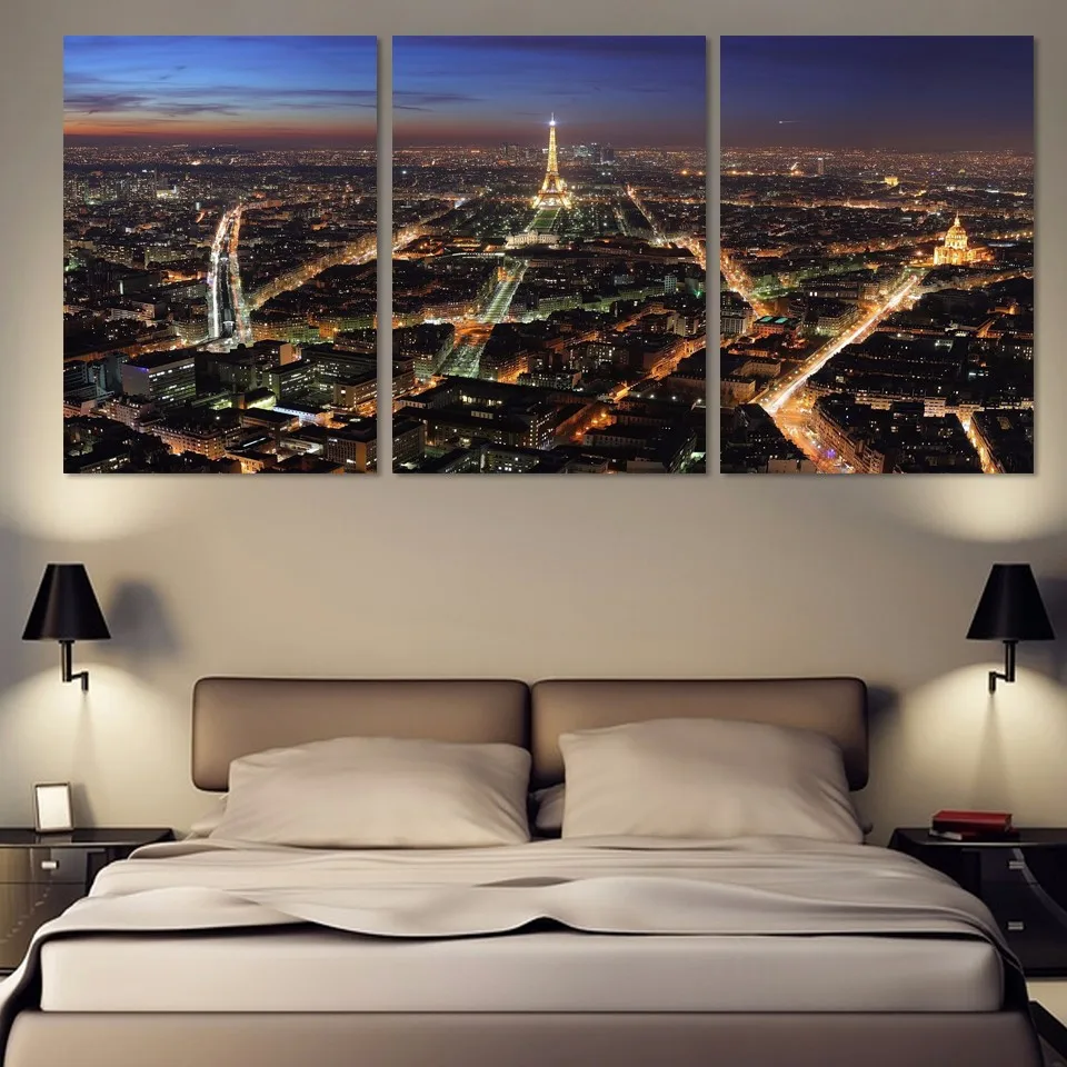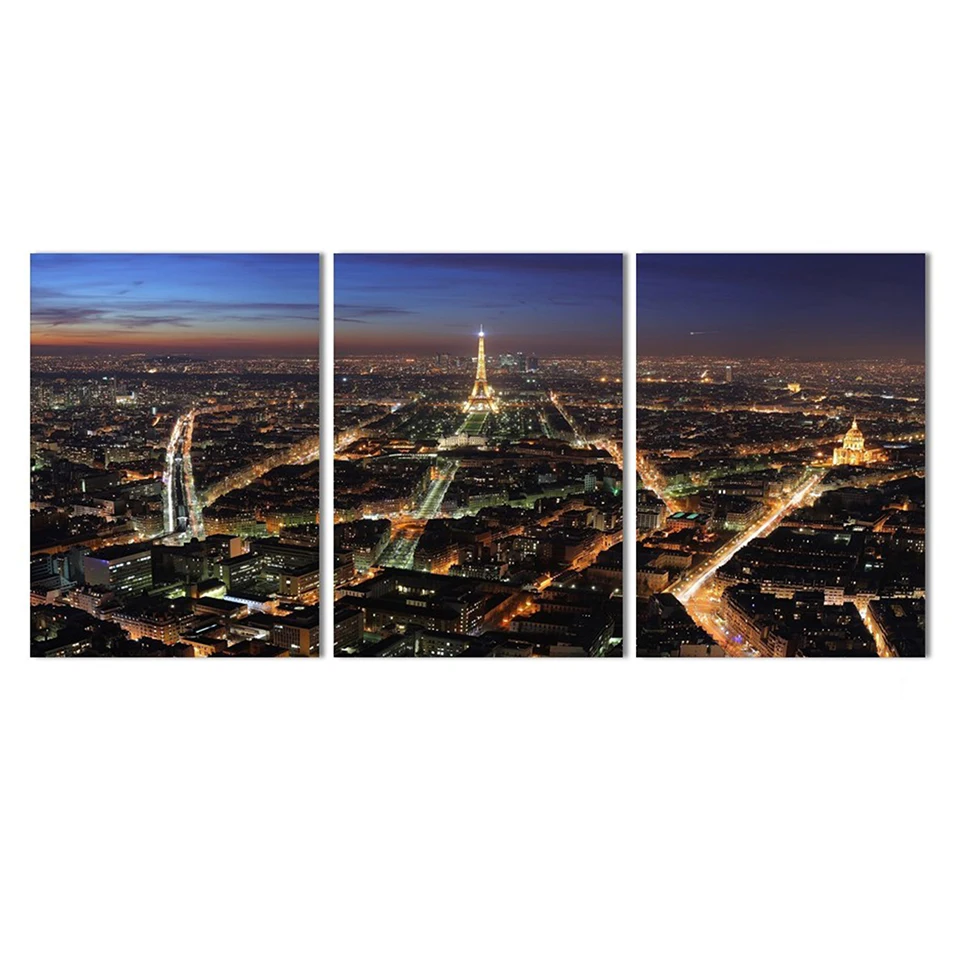 Холст HD, картины, настенные картины, 3 штуки, Парижская Эйфелева башня, Ночной пейзаж, освещение, плакаты, Декор для дома