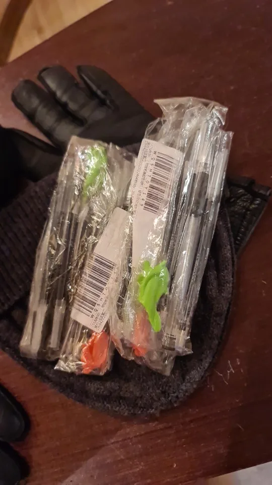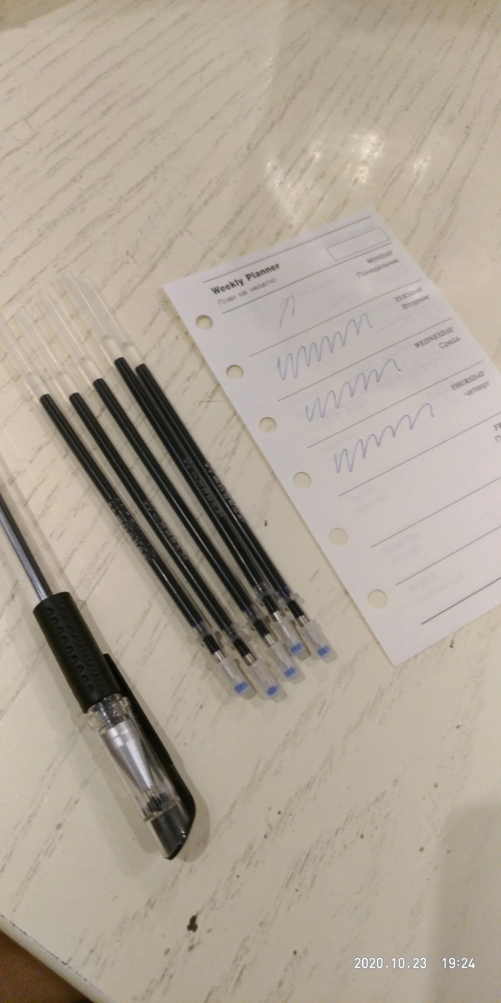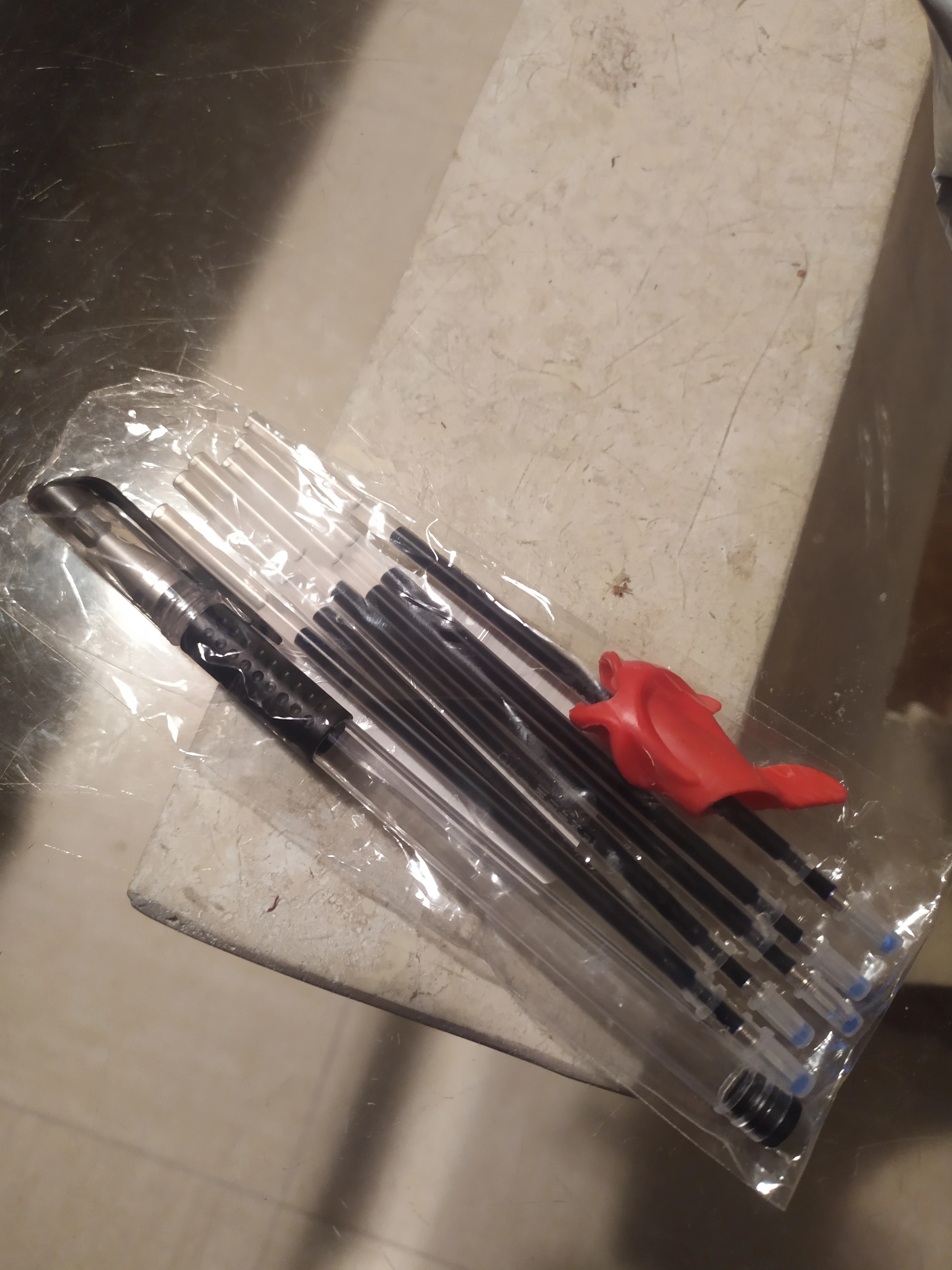 Заказ пришёл быстро, за две недели. Ручка хлипкая, стержни пишут, но быстро уж исчезают.