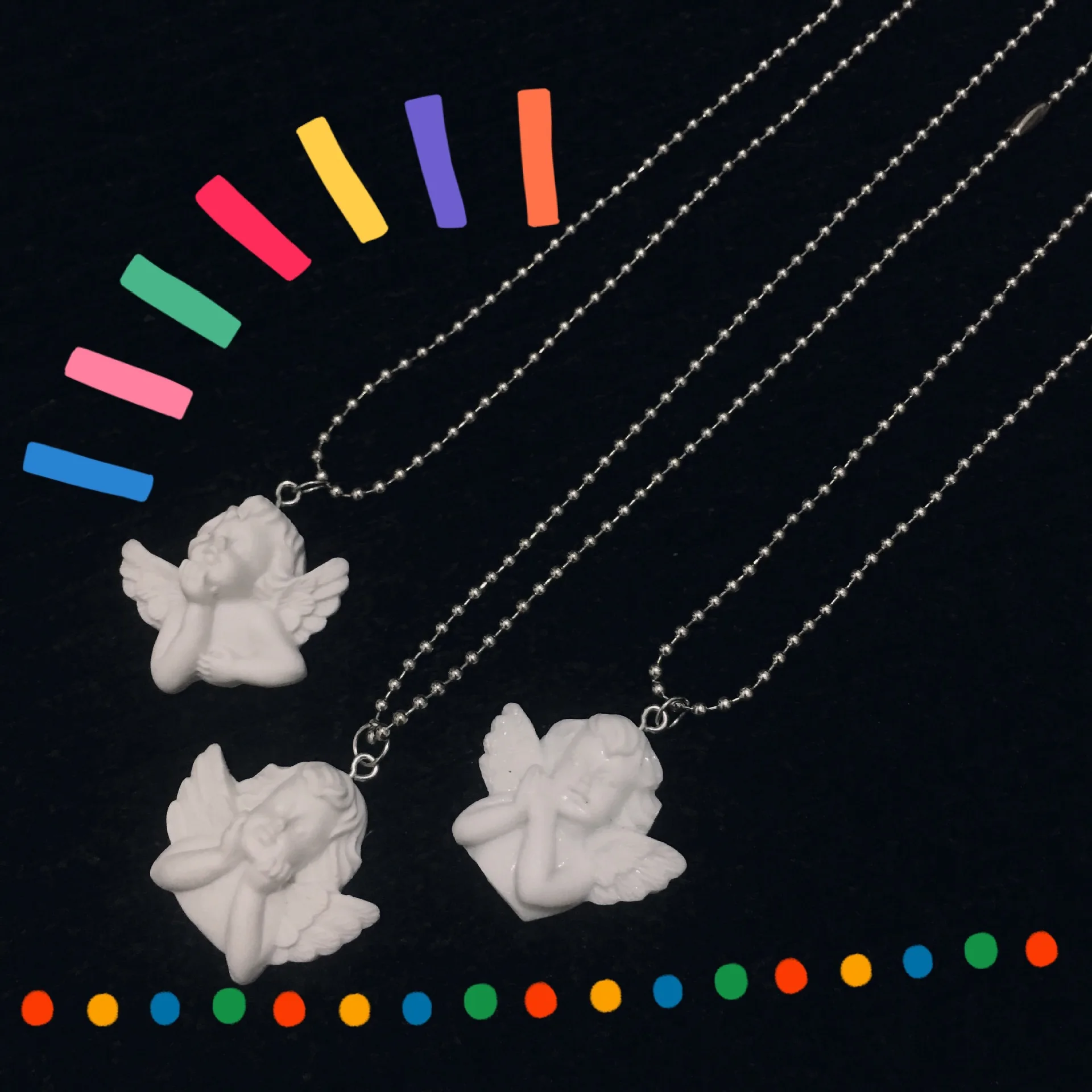 Кулон из нержавеющей стали ожерелье милый Амур Ангел Длинная цепочка детские украшения в форме милой для женщин мужчин дружбы подарки для девочек