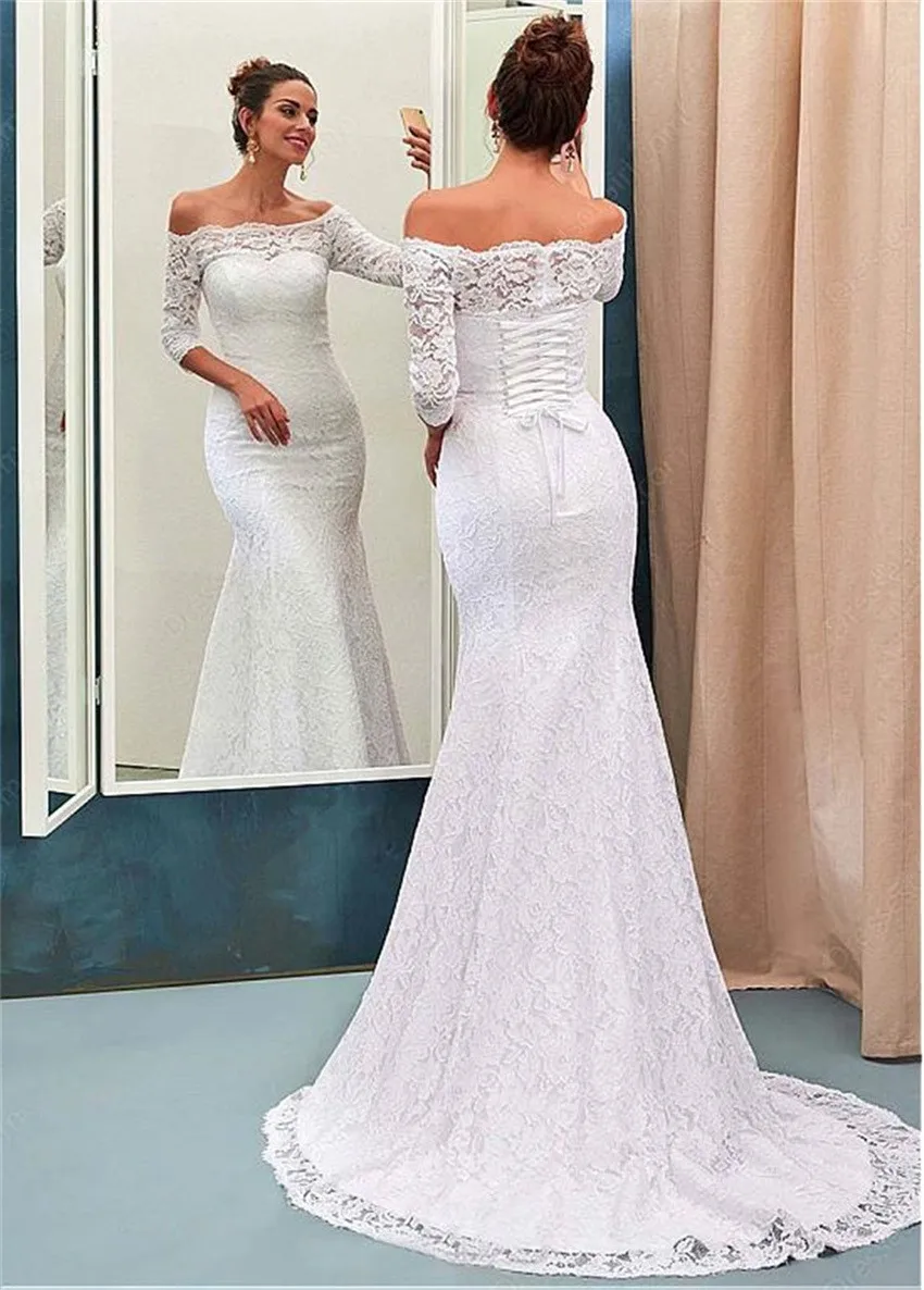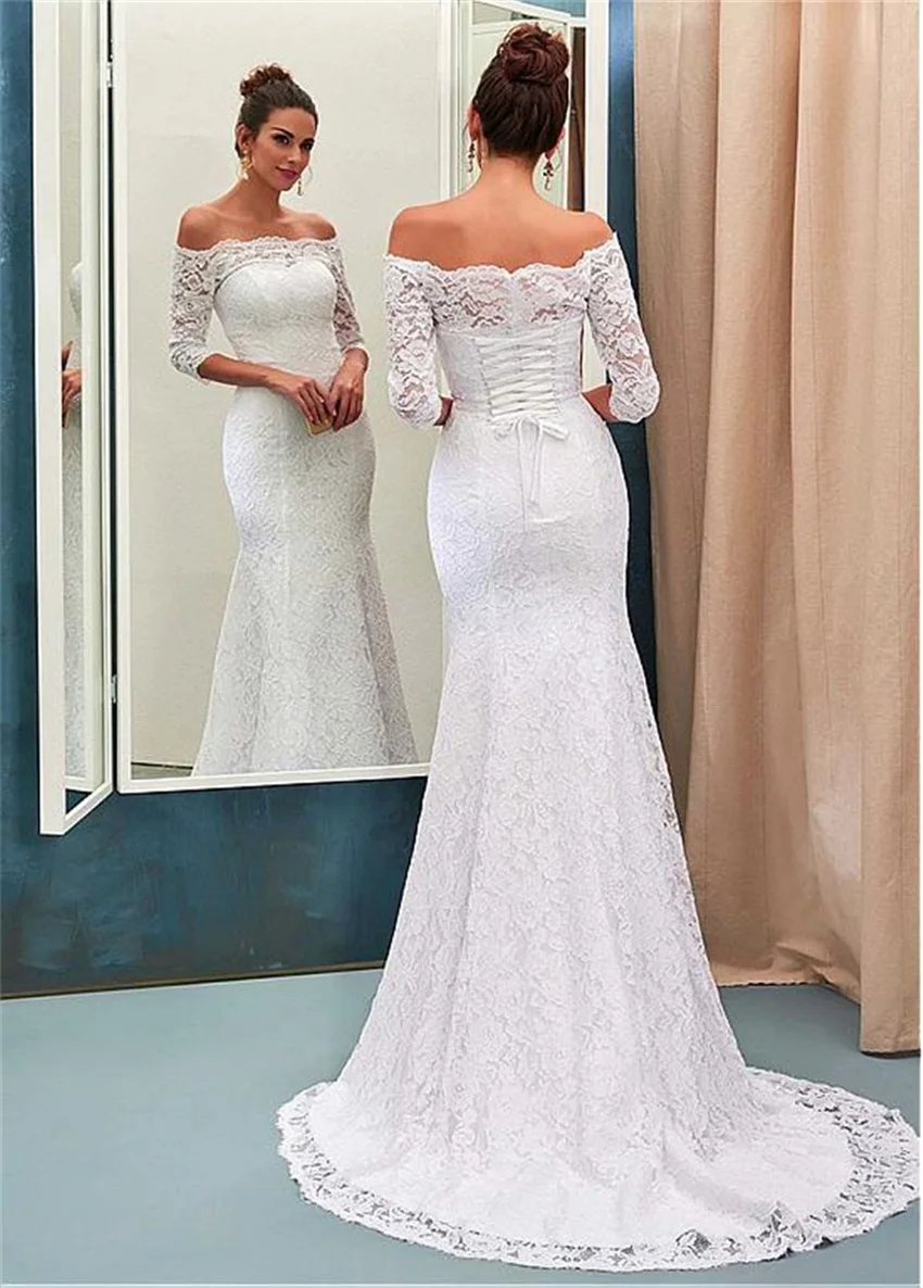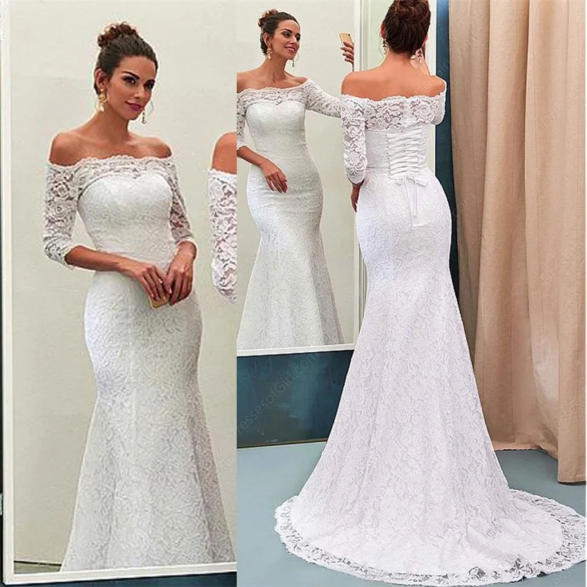 NUOXIFANG принцесса кружевное свадебное платье с открытыми плечами Русалка вырез лодочкой кружевные свадебные платья с рукавом до локтя вечернее платье