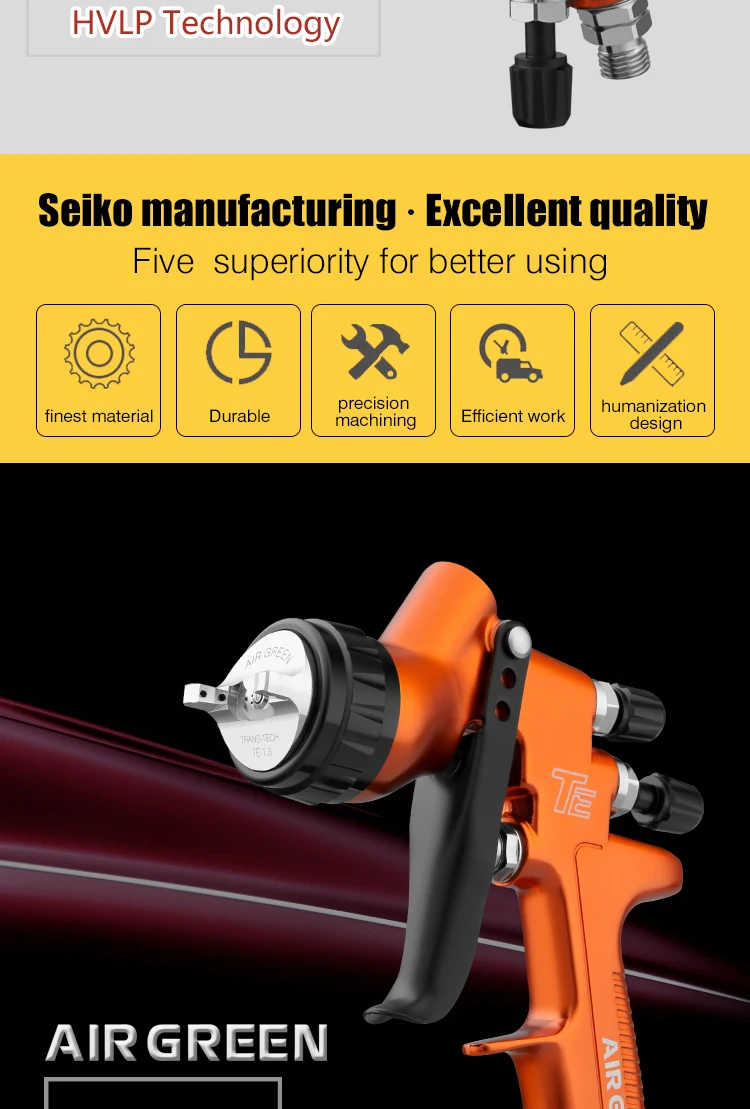 Профессиональный пистолет-распылитель высокого качества, 1,3 мм, HVLP, прозрачное покрытие, лак, Воздушная краска, регулировка ширины узора 30 см
