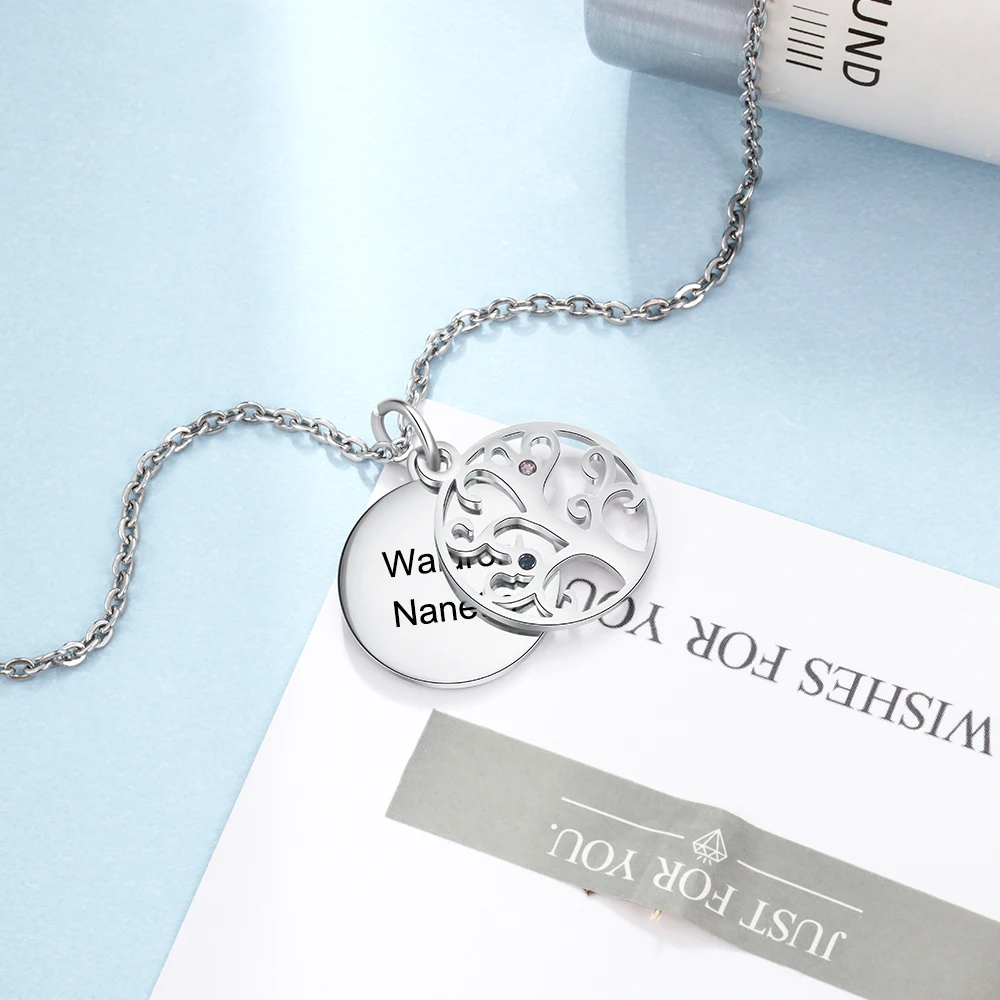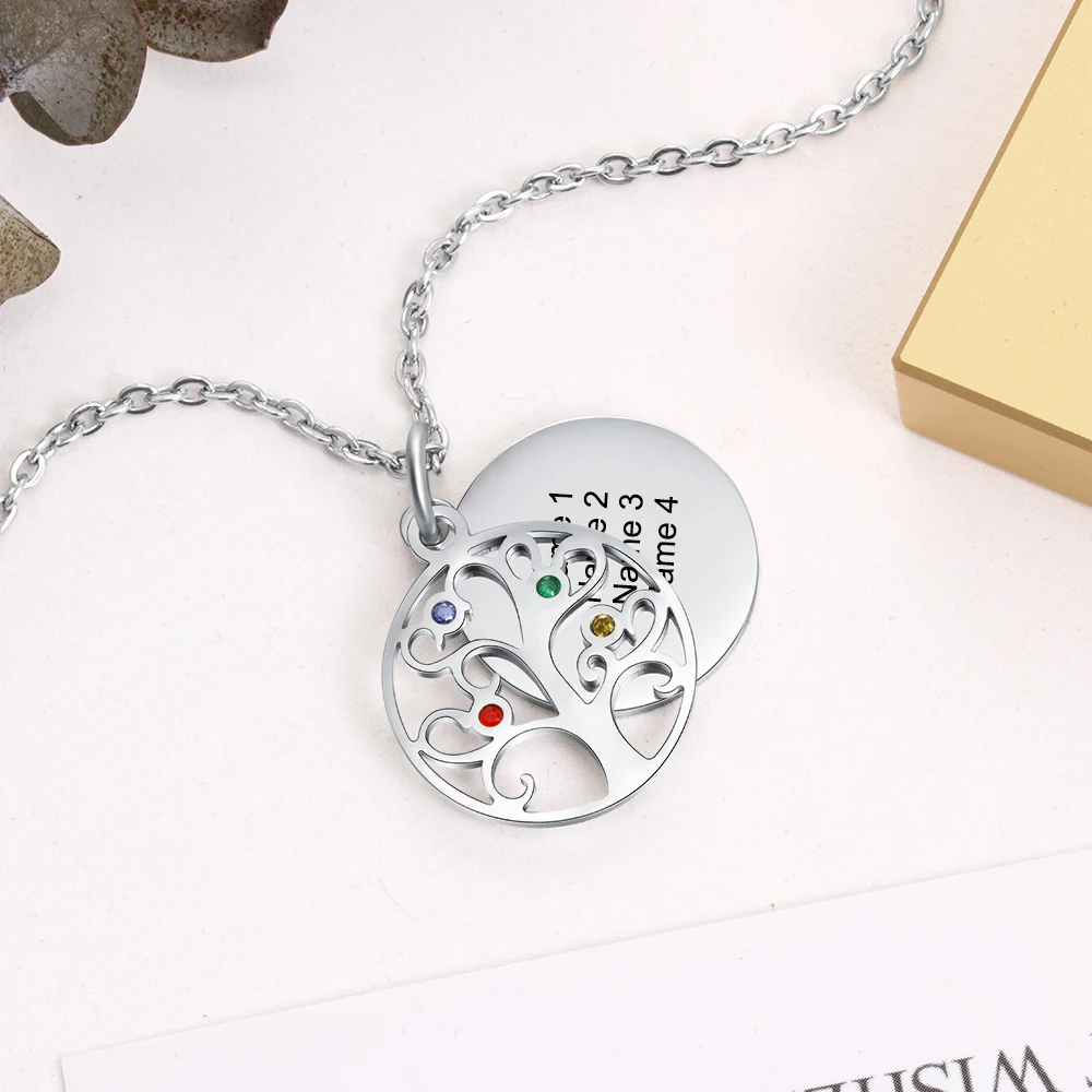 Ожерелье с подвеской из филигранной древесины с камнями по месяцу рождения