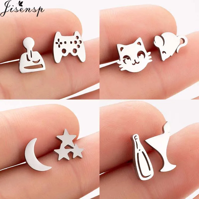 Женские серьги-гвоздики Jisensp, асимметричные серьги в виде кошек, симпатичная мышь из мультфильма