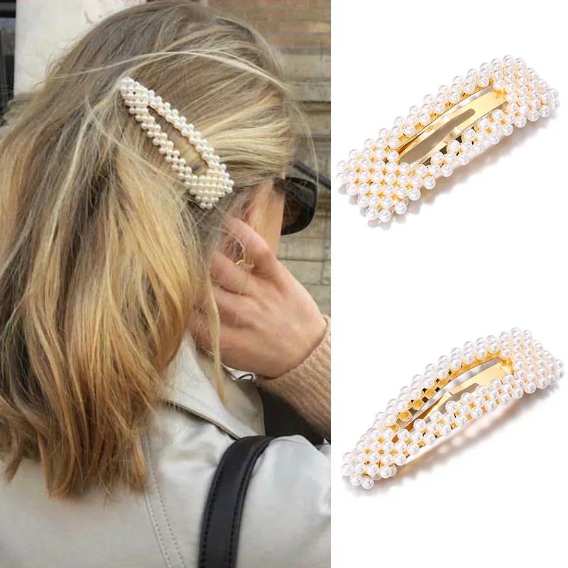 Заколка для волос женская, с жемчугом, элегантная, в Корейском стиле