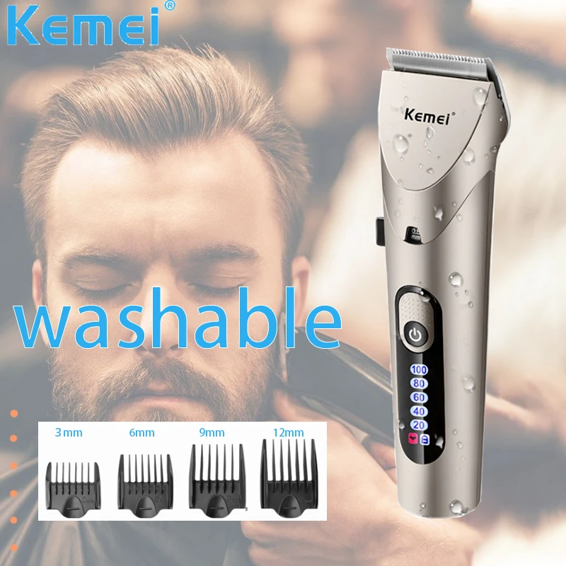 Машинка для стрижки волос Kemei 2021, беспроводная профессиональная электрическая Водонепроницаемая машинка для стрижки волос для мужчин