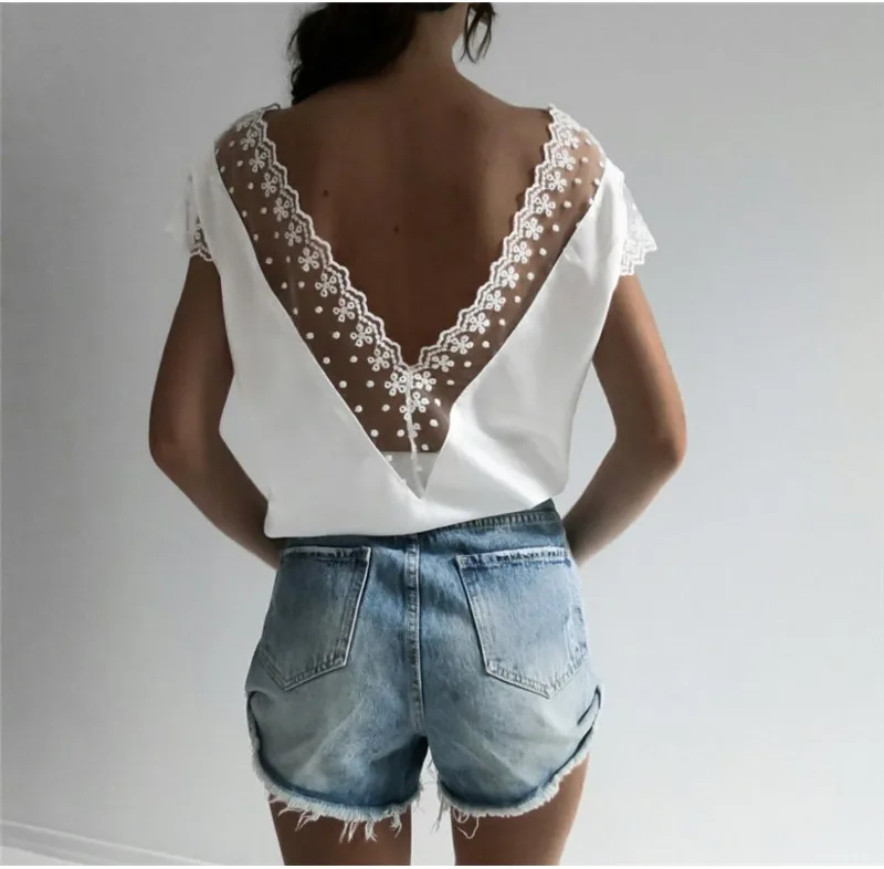 Женские повседневные кружевные топы и блузки с коротким рукавом, элегантные летние женские белые топы с V-образным вырезом, блузка хараджуку