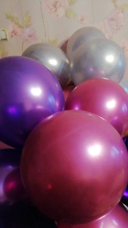 шары мне понравились, большие и цвет как в описании, но форма немного квадратная, они не круглые, как обычные шары, а если попробовать надуть их до размеров, чтобы все складки расправились, то они лопаются.