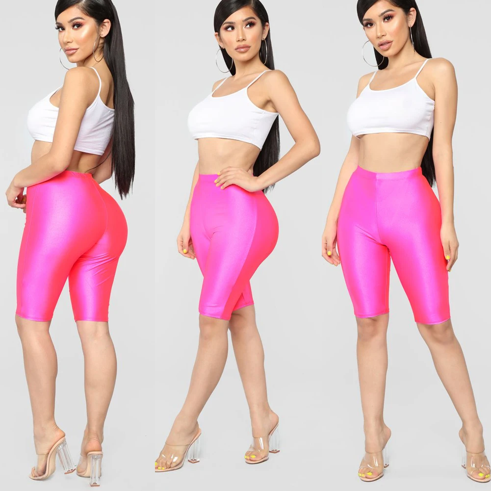 Женские компрессионные блестящие обтягивающие шорты с высокой талие...