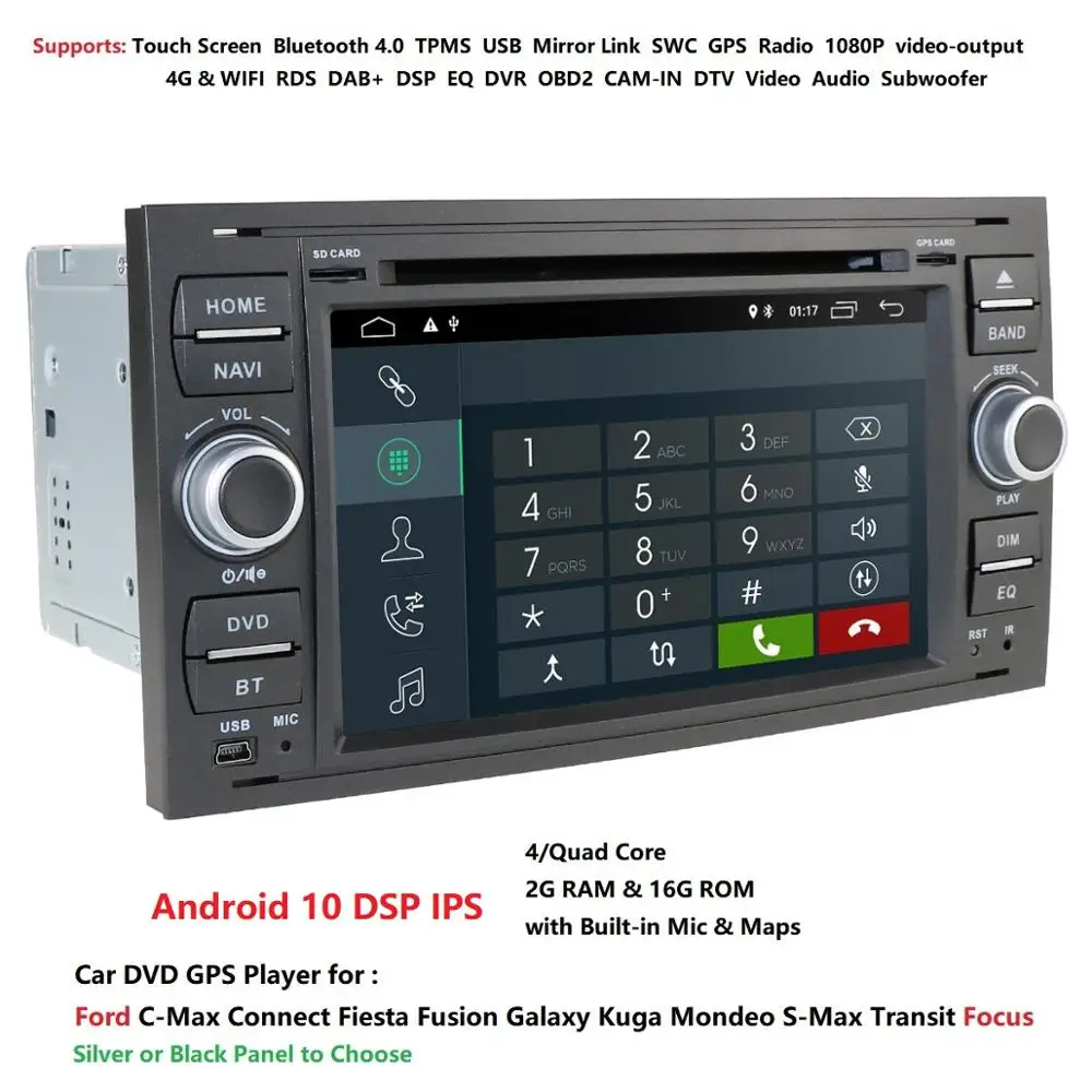 Автомагнитола DSP, 2DIN, Android, 2 ГБ + 16 ГБ, GPS, DVD, для Ford ...